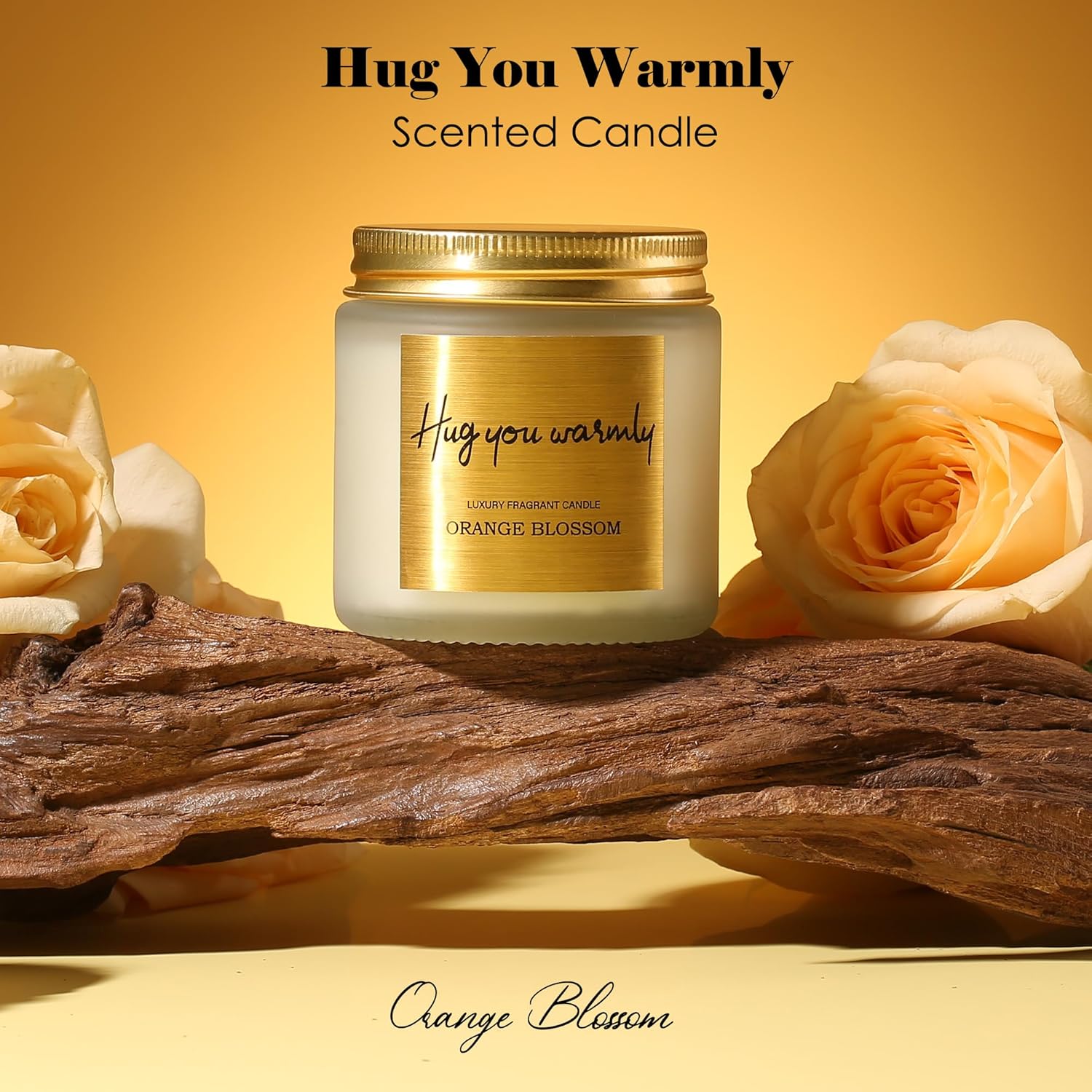 Relaxing Spa Gifts for Her: Carefully packed with a perfect blend of delightful and indulgent treats. Inside, you will see a soy wax Orange Blossom scented candle to create a soothing ambiance, a handmade oatmeal soap for a pampering experience, a premium gold bath bomb, and set of 3 premium silk eye mask, headband, hair scrunchy, to add a touch of luxury to spa time