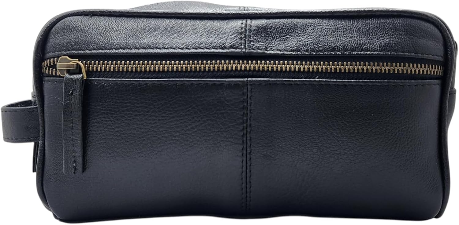 Upgrade your travel essentials with this Black Genuine Buffalo Leather Toiletry Bag – a perfect balance of rugged durability and modern elegance. Handcrafted by skilled artisans, this vintage dopp kit is designed to keep your grooming essentials organised whether you’re at home, on holiday, or on the go. Made from 100% full-grain buffalo leather, this travel organiser develops a rich patina with use, making each piece unique. The spacious main compartment comfortably fits your daily grooming items such as shampoo, razors, toothbrushes, deodorants, and skincare. A side handle adds convenience for carrying or hanging in the bathroom, while the durable zippers and polyester-lined interior ensure longevity and easy cleaning. Compact in size yet generously roomy, this leather wash bag is ideal for travel, gym sessions, or as a stylish home organiser. A thoughtful gift for men and women, perfect for occasions like Christmas, Father’s Day, birthdays, or anniversaries. Invest in a travel companion that combines luxury, functionality, and heritage craftsmanship.