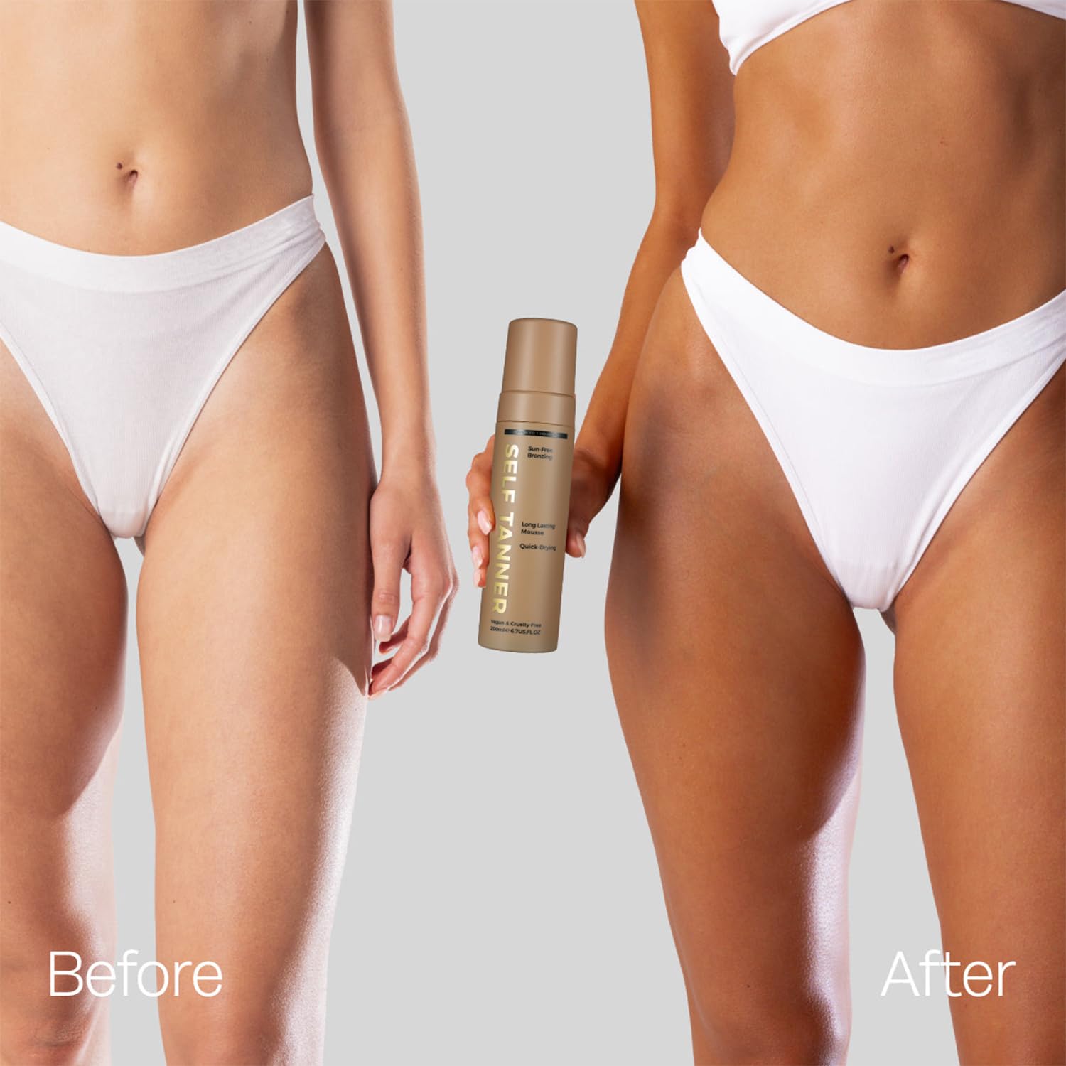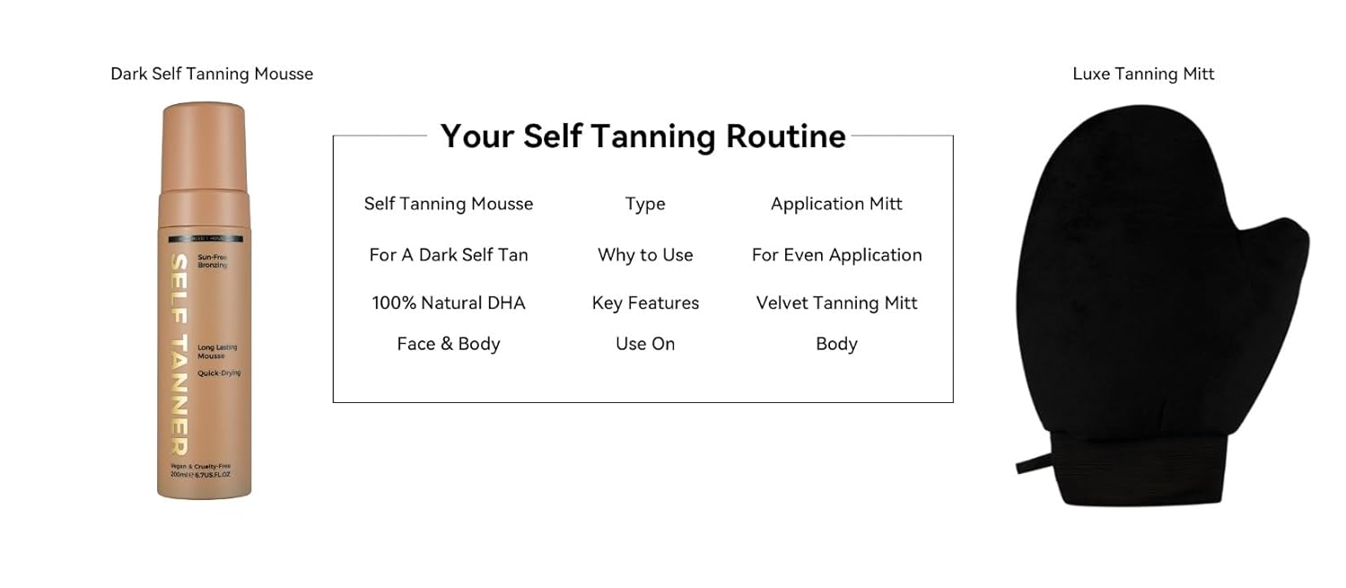 2.Apply the Mousse: Use a tanning mitt to evenly apply the mousse over your bodypaying special attention to lighter application on elbows and knees.