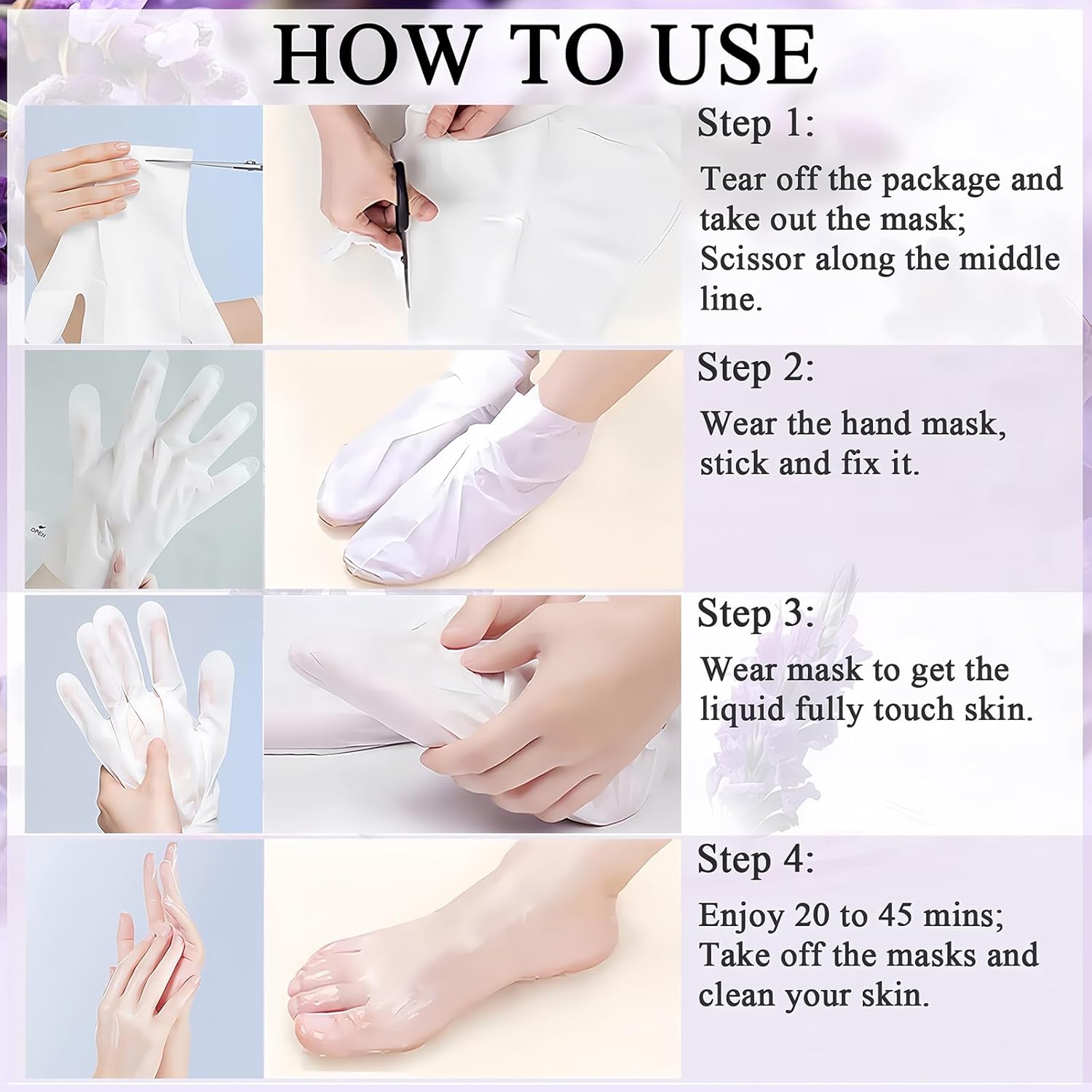 【Deep Hydration & Nourishment】 Formulated with calming lavender extract, the hand and foot masks provide lasting moisture to help relieve dryness, nourish skin, and improve texture. Regular use leaves hands and feet feeling smooth, supple, and rejuvenated