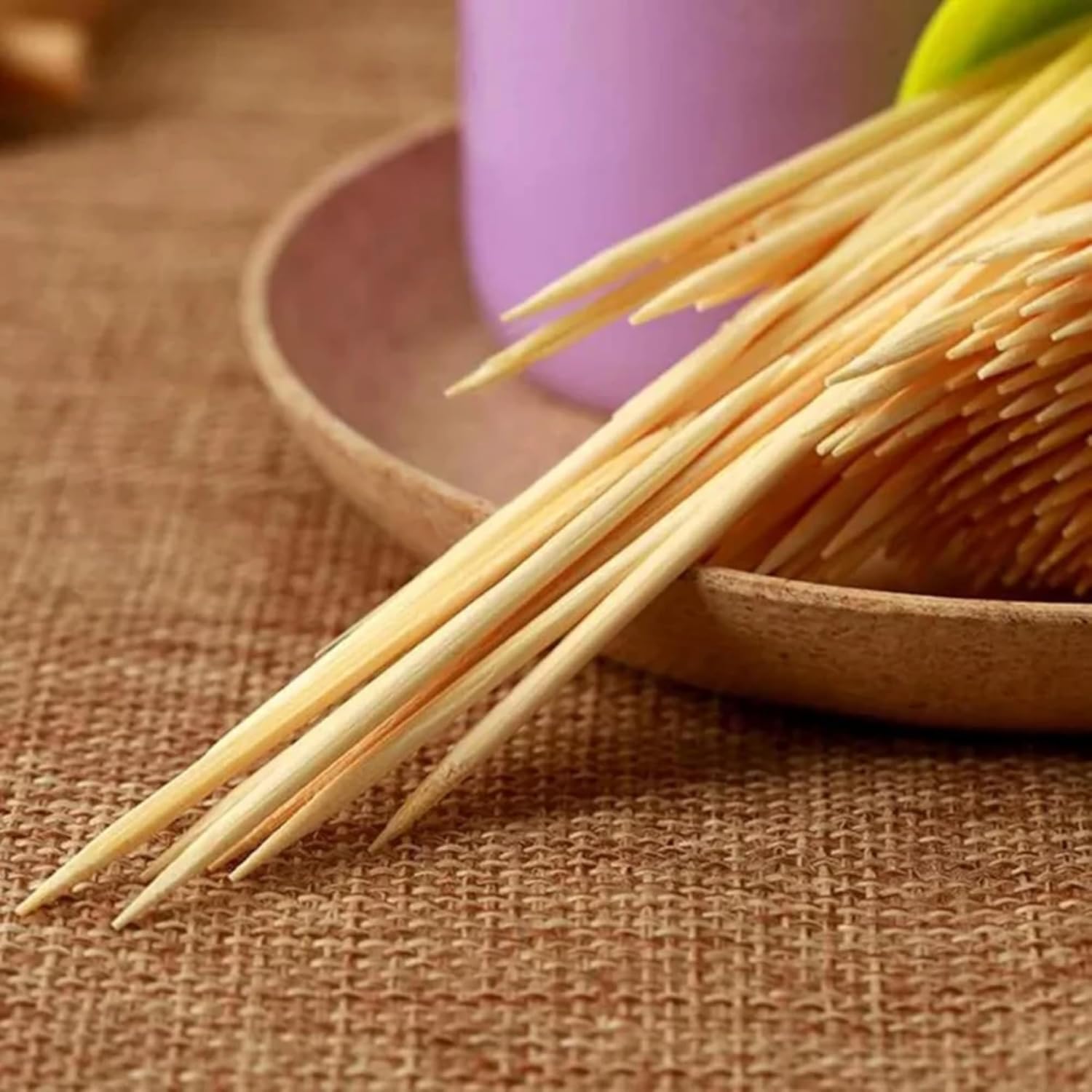 DENTAL HYGIENE ESSENTIALS: Ensure superior dental hygiene with our natural bamboo toothpicks. Crafted from sturdy bamboo wood, these double-sided picks guarantee splinter-free teeth cleaning. Durable and reliable, these cocktail toothpicks provide hassle-free post-meal dental care, keeping your smile bright and healthy always.