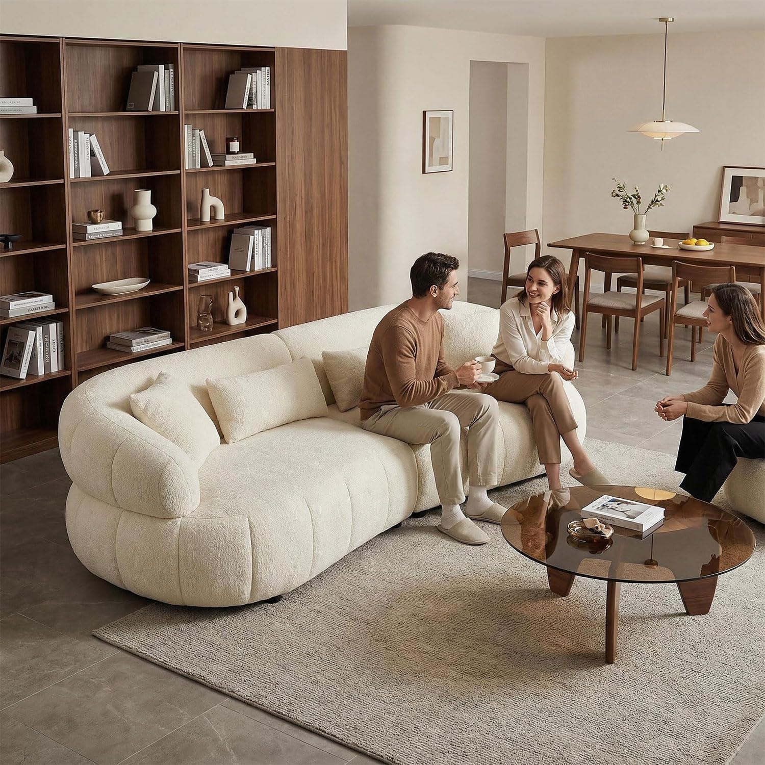 Bring a touch of organic sophistication to your home with the Alyncasa Curved Sectional Sofa. This 102-inch masterpiece features a graceful, arced silhouette that breaks away from traditional rigid lines, creating a welcoming and conversational atmosphere. Wrapped in premium Beige Fabric, its refined texture and “cloud-like” feel make it the perfect centerpiece for your living room, apartment, or modern office lounge.
