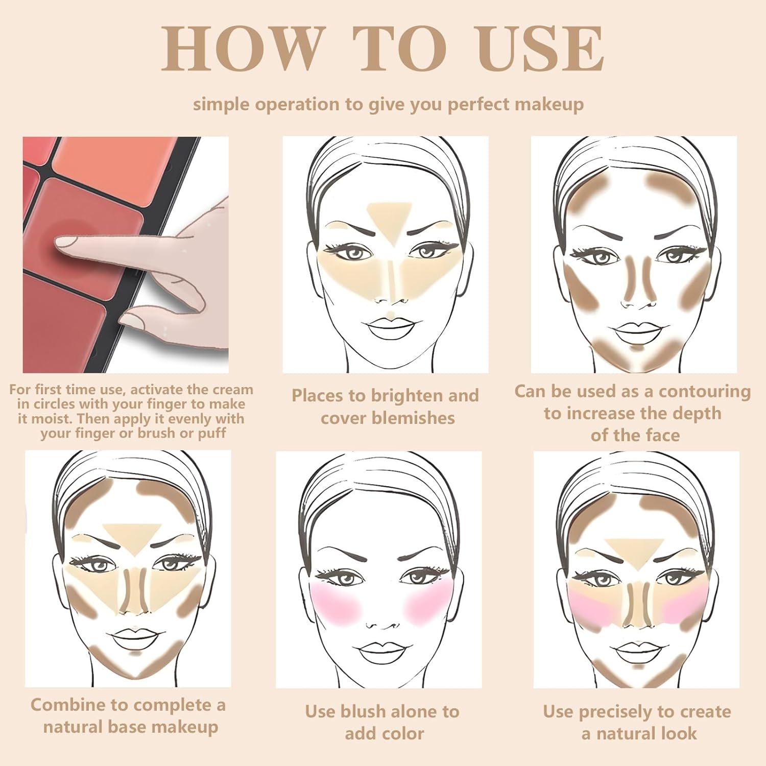 【Cream Blush and Concealer Palette】6 colors of concealer cream and 6 colors cream blush available, give you more choices for choosing the color that fit your skin tone. It can also meet your different needs for makeup.