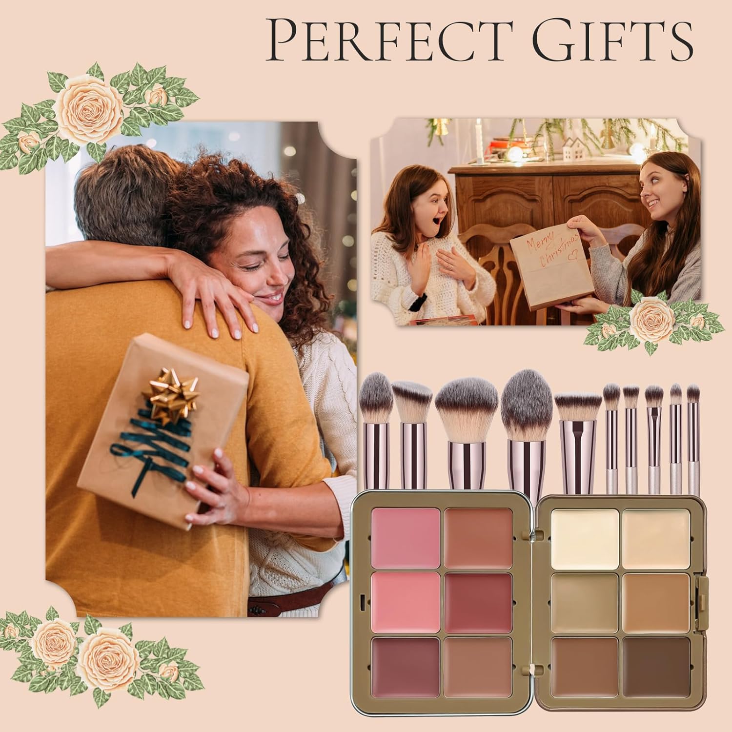 【Makeup Palette & Brush Set】: This makeup palette includes 12 colors highly pigmented eyeshadows concealer blush, plus 10 premium champagne gold brushes for a flawless full-face makeup application. Perfect for everyday makeup, office, party, or professional makeup artistry.