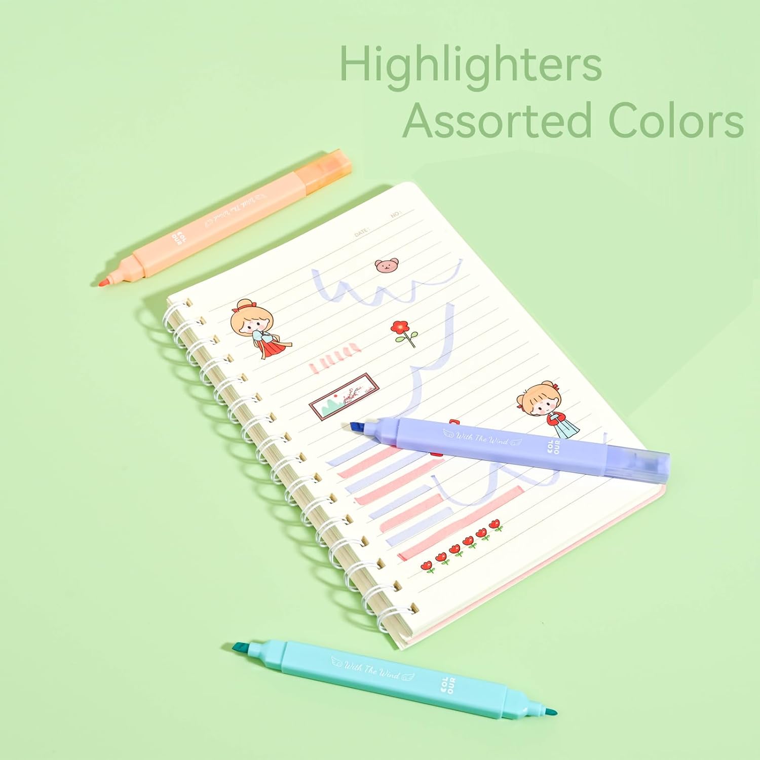 ღWIDE USE: aesthetic highlighter perfect for school college, home, office and travel,highlighters assorted colors Great for color coding, highlighting journals, work plans, study, notes, for students, teachers, artists.