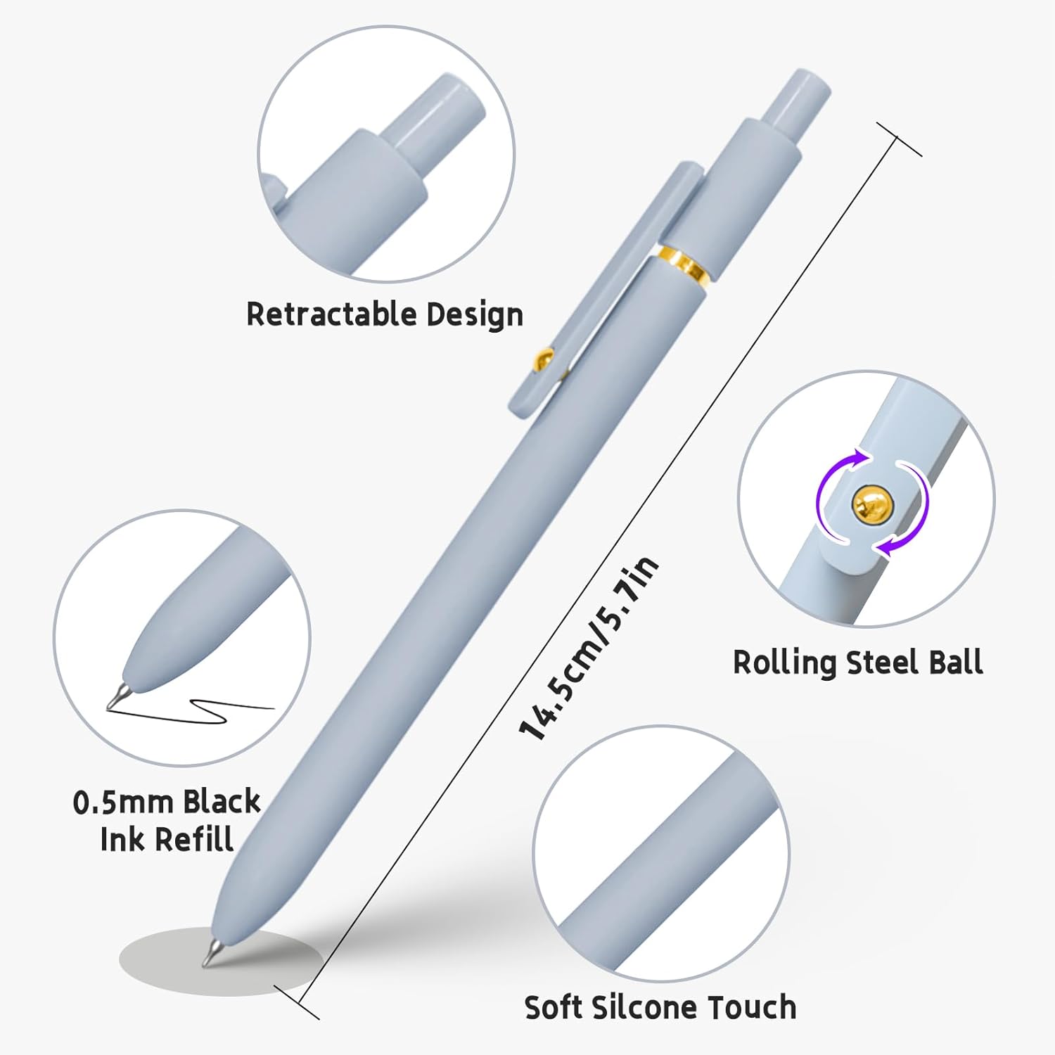 12 Pcs Gold Ball Design: You will receive 12 pcs quick-drying 0.5mm black ink pens with a modern gold ball design. It’s a new stylish design and I’m sure you’ll love it