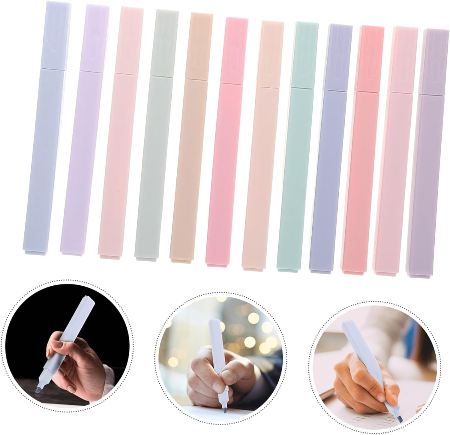 12pcs Aesthetic Highlighters Smooth Tip Mini Highlighters for Boys and Girls No Bleed Markers School and Office Coloring Tools