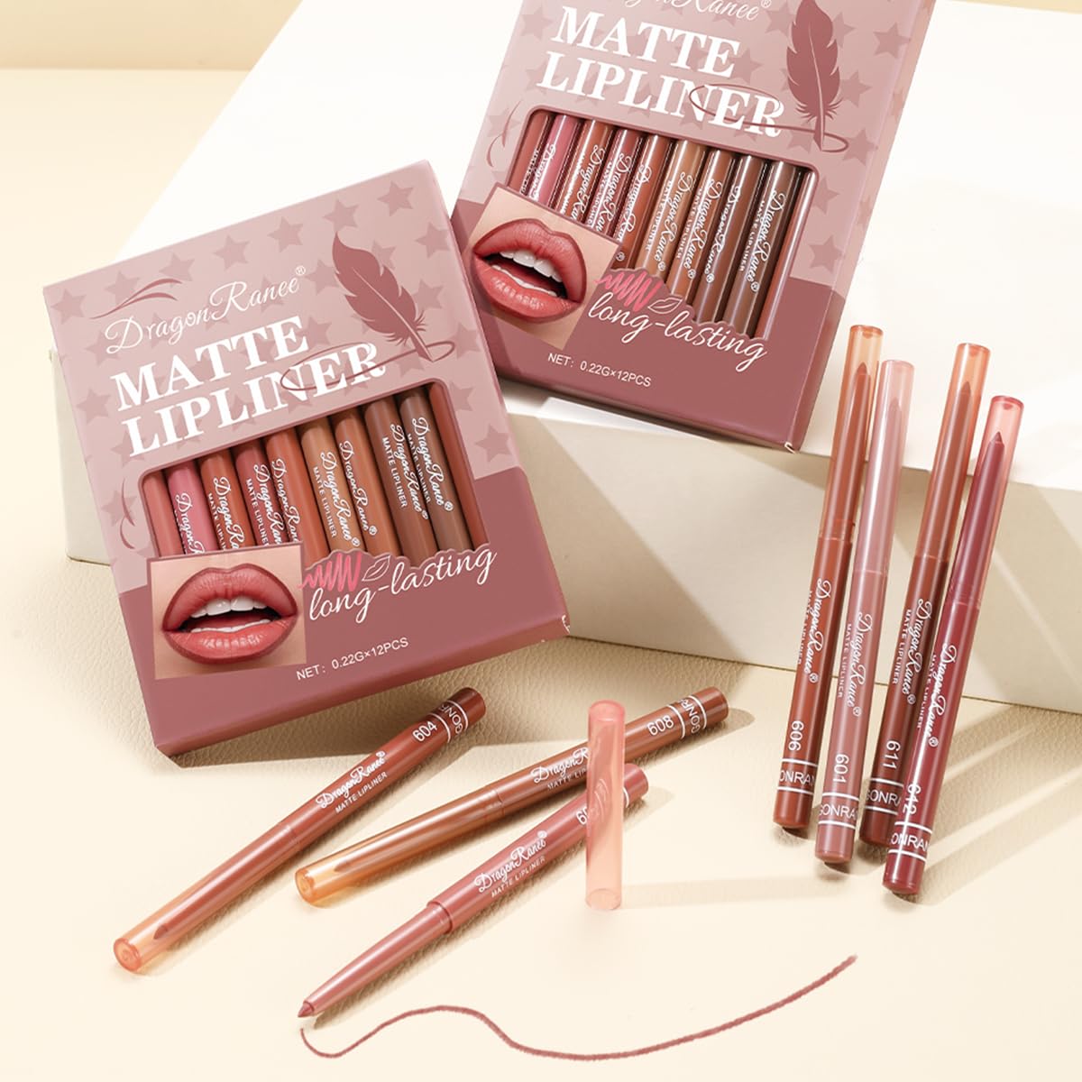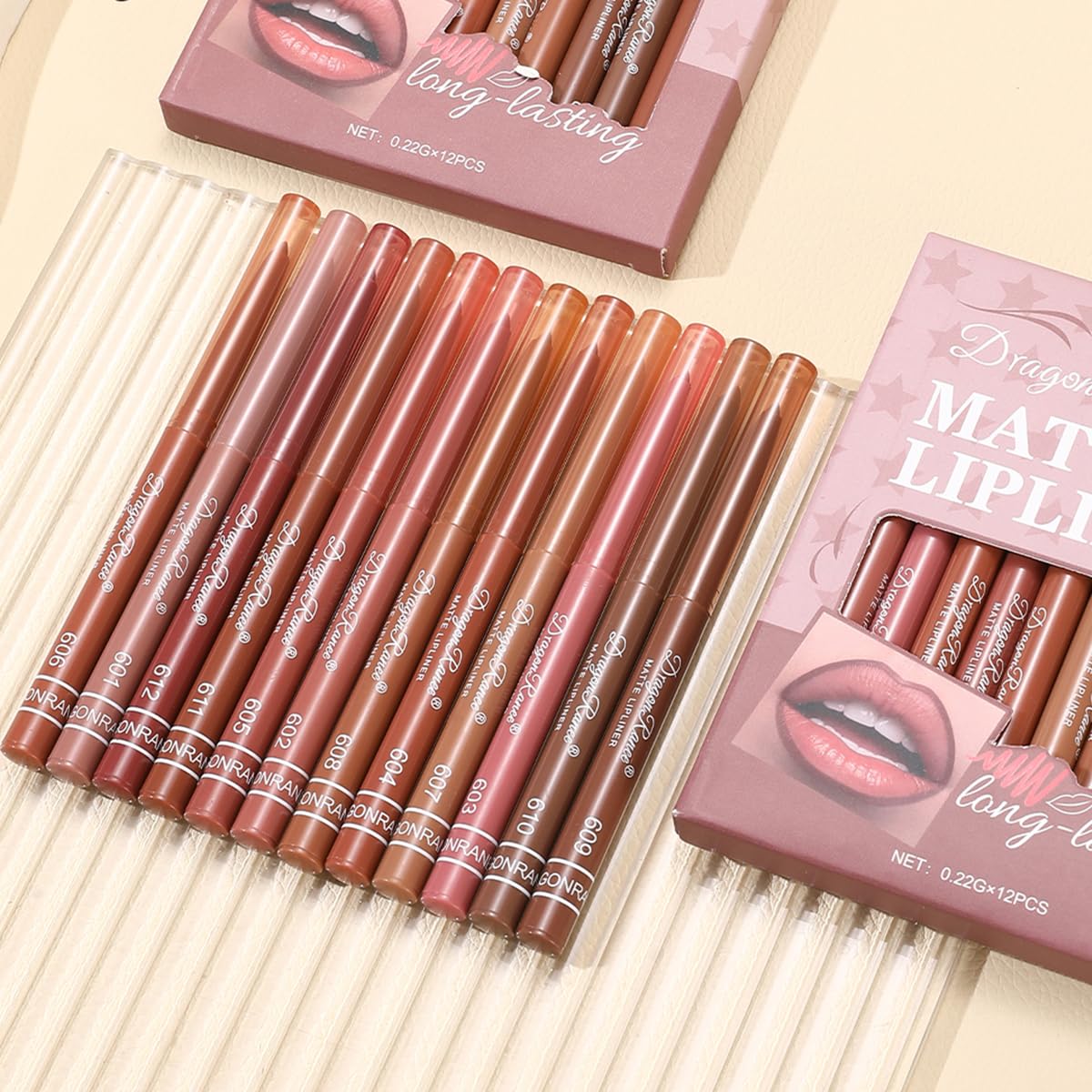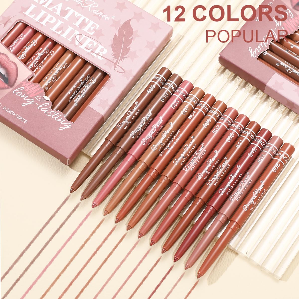 【12 Colors Lipliner 】12 different colors lip liner pen set,with a perfect package, From nude lip liner, pink lip liner line and define your lips