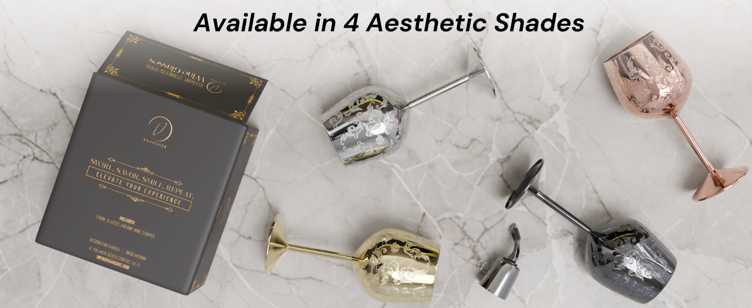 The Vaanshie wine glass is made from high-quality stainless steel, offering durability and unbreakable use.