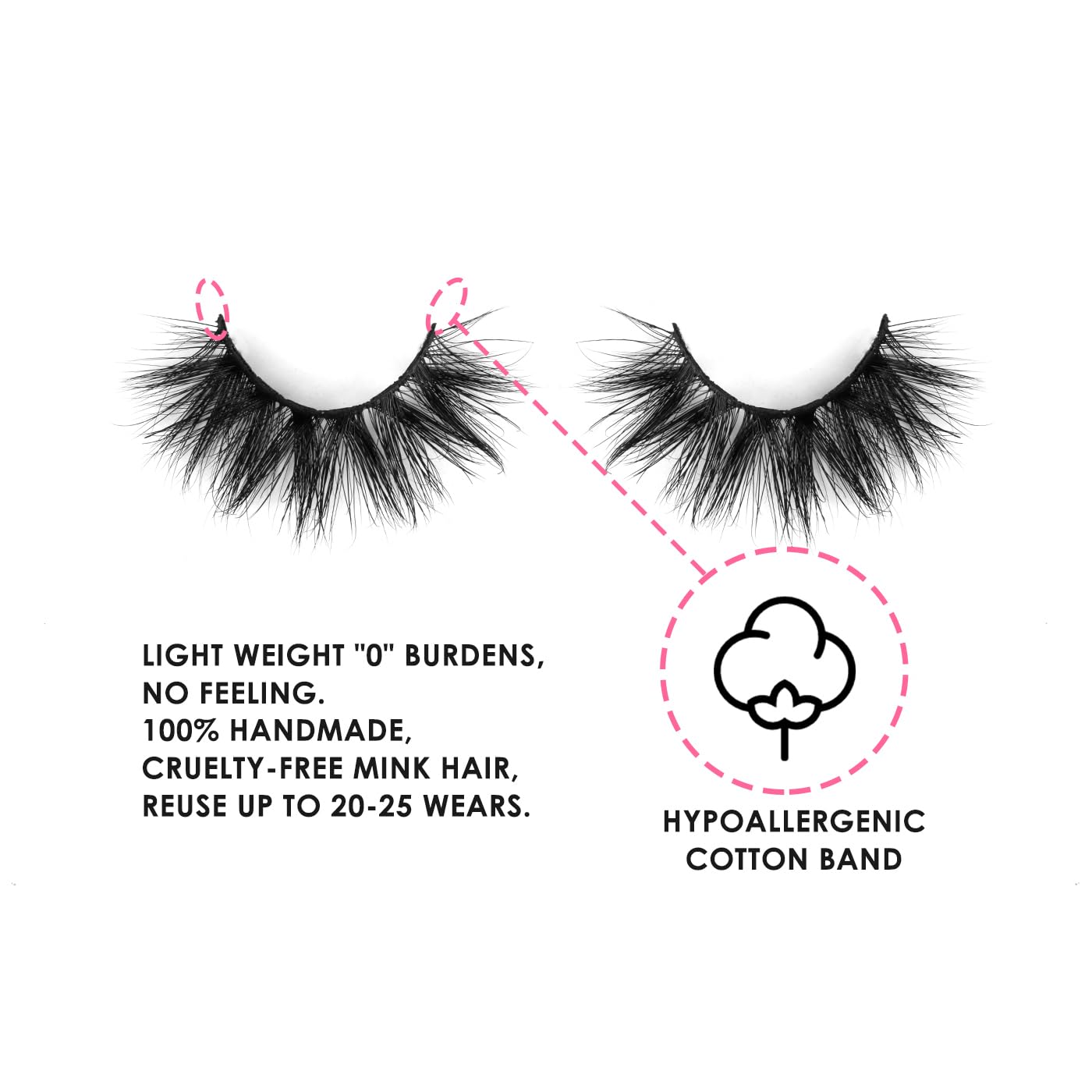 Premium Mink Fur Lashes- Handmade with 100% high-quality siberian mink fur, these 3D style lashes are shiny, curly and make an instant impression. They make your eyes look distinct and vividly glamorous. They’re so comfortable, you’ll feel great wearing them all day long.