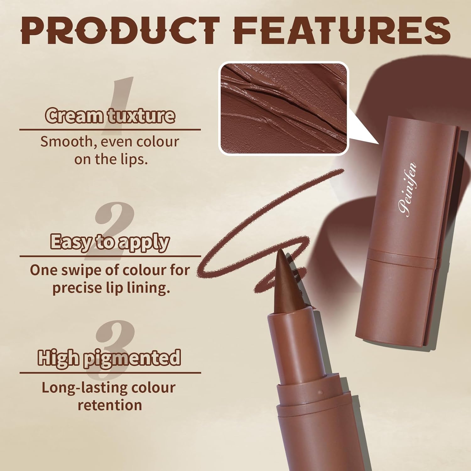 2 Colors Lip Liner and Lip Gloss Combo: This contains 2 brown lip liners and 1 gloss lip glaze. The lip liner colors are the very popular light brown and dark brown respectively, with a creamy texture and very smooth application, so you can easily get the colour of the lip liner; with the moisturizing Lip Glaze, you can create a gradient lip look