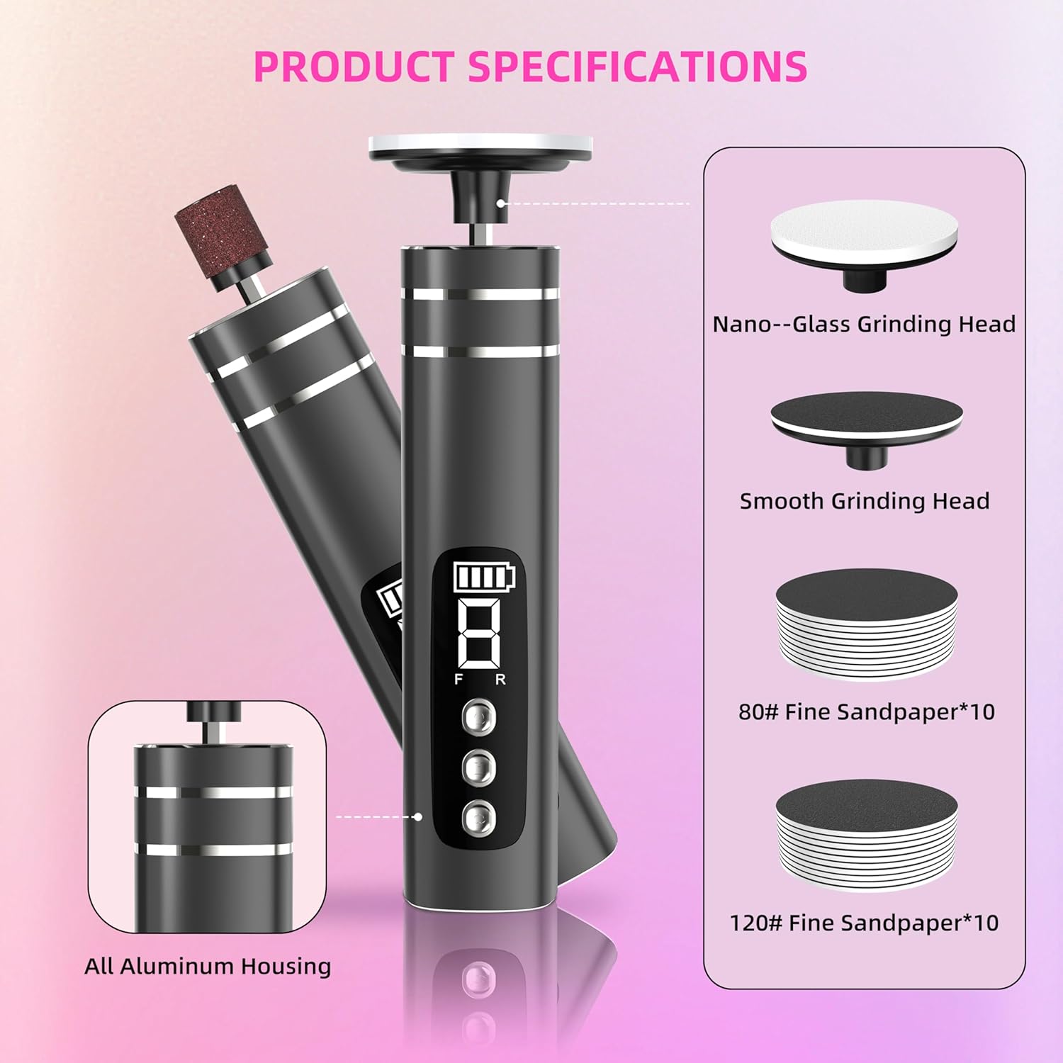 Replaceable Sandpaper: The foot callus removal equipment with 10 replaceable 80 – grit and 120 – grit sandpaper discs (20PCS in total) and 1 durable Nano Head for foot callus and dead – skin removal, easy to attach and hygienic. Plus, 10 manicure sandpapers for nail repair, meeting both foot and hand care needs. Easy to use and disassemble, clean and hygienic, ideal for home and salon use
