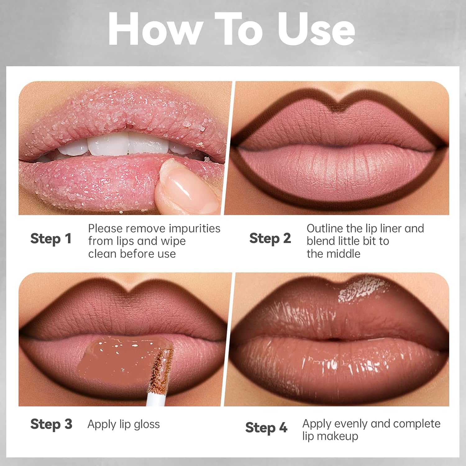 Plumping and Easy to Use: The lip liner boasts a creamy texture, gliding on effortlessly for smooth application. It blends seamlessly to define your desired lip shape. Paired with a moisturizing, high shine tinted lip gloss that adds another layer of colour, this combination creates a trendy lip look