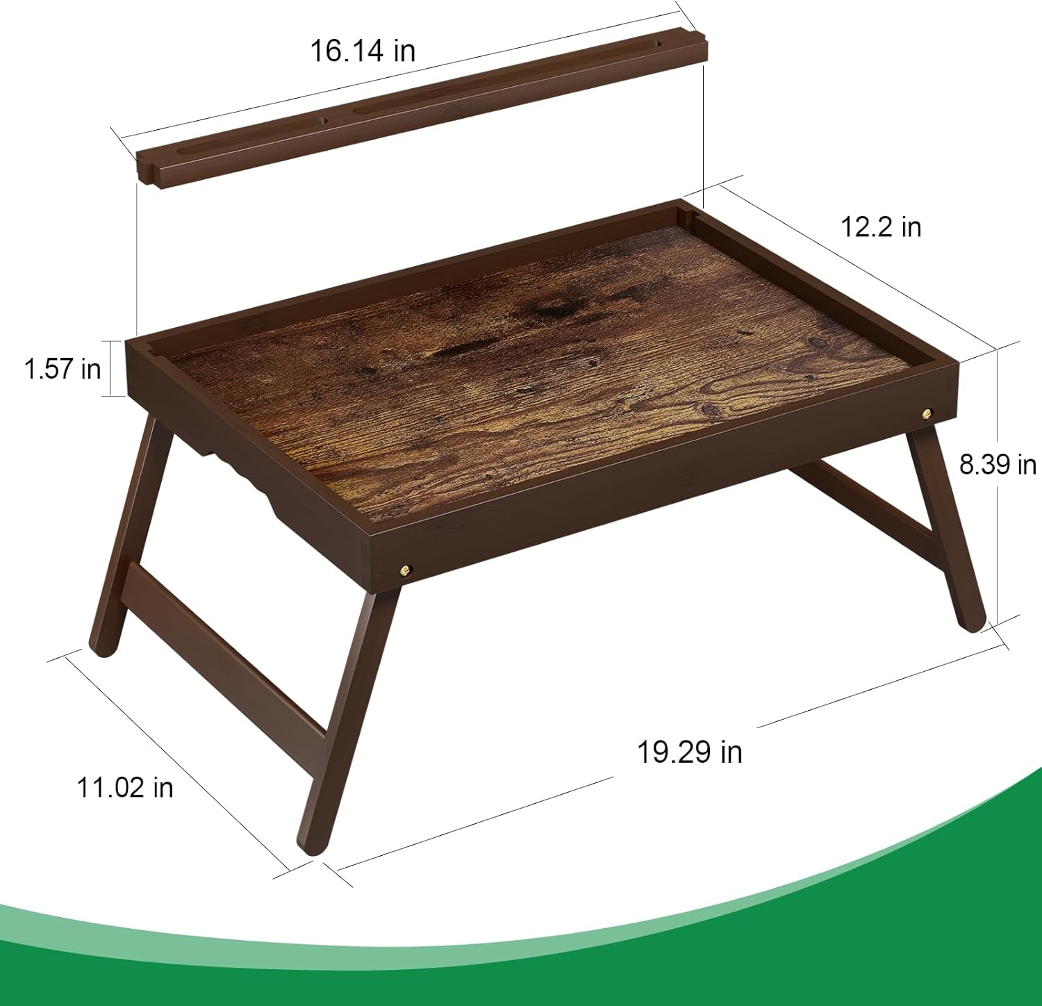 2 Pack Bamboo Breakfast Tray with Foldable Legs & Detachable Stand | Ergonomic Handle | Portable Bed Tray for Eating, Working, Laptop, Tablet, and Phone