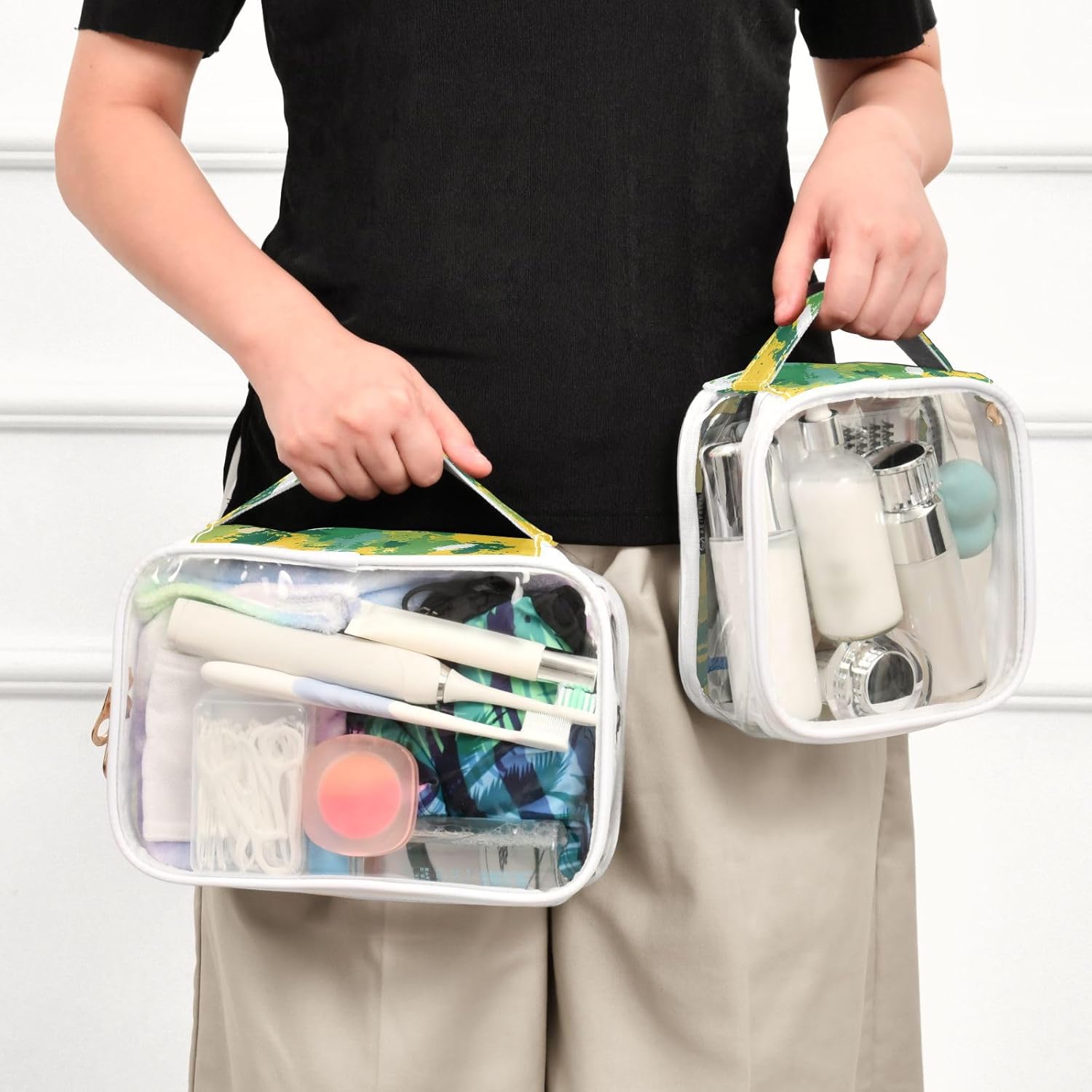 2 Pack Clear Makeup Bag, Green Yellow Tie Dye Car Pouches for Organization Waterproof Travel Toiletry Bags Cosmetic Case for Women
