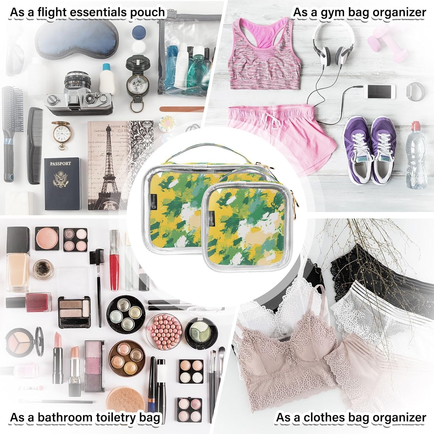 Be the first to review “2 Pack Clear Makeup Bag, Green Yellow Tie Dye Car Pouches for Organization Waterproof Travel Toiletry Bags Cosmetic Case for Women”