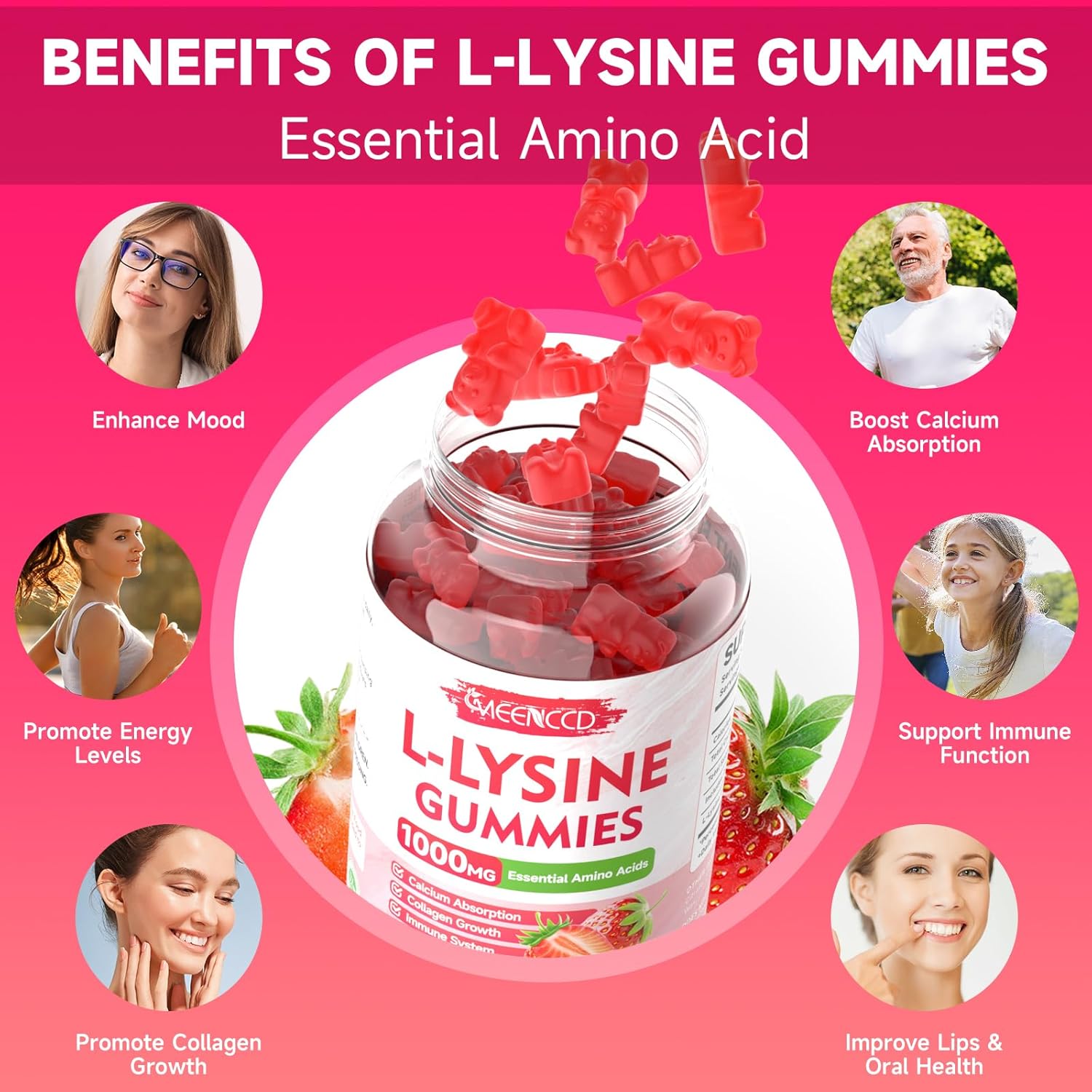 Benefits of L-Lysine: L-Lysine supports lip and mouth health, enhances the immune system, and promotes collagen production for adults and children. Enjoy the convenience of taking two gummies daily for easy consumption.