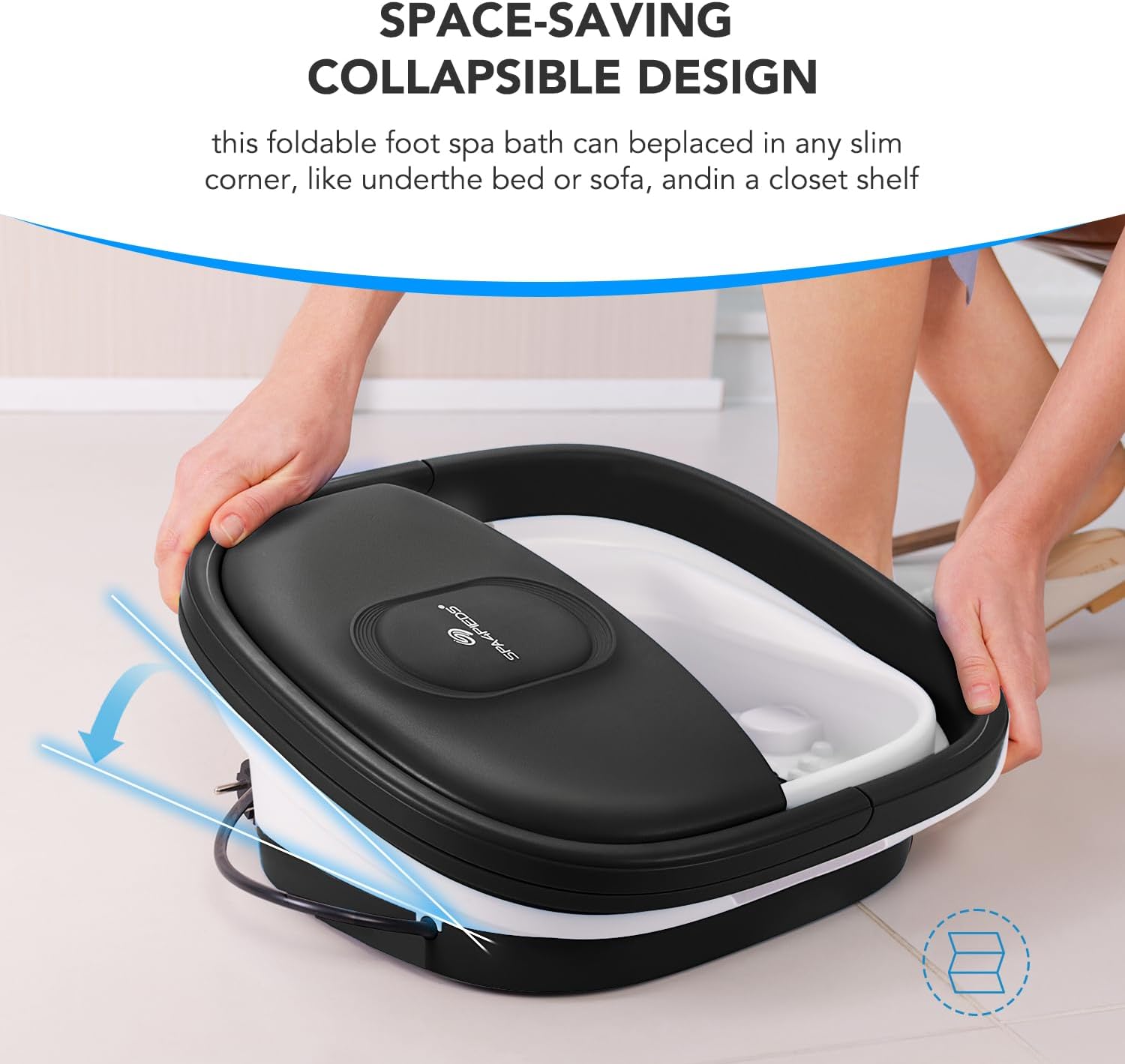 Space-Saving Collapsible Design: Designed to save space, this collapsible foot spa fits easily under sofas, beds, or in tight storage areas, making it a practical addition to any home.