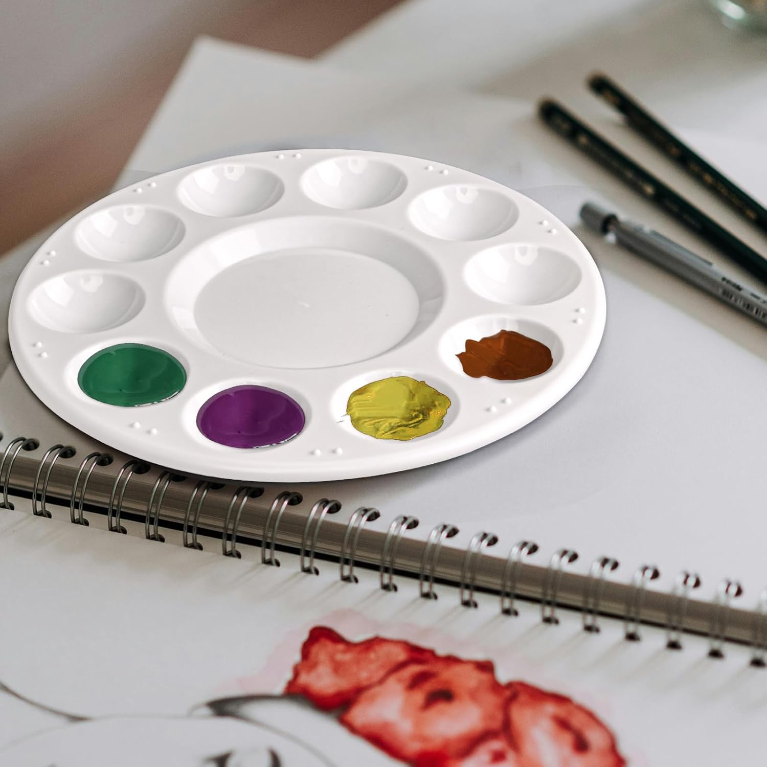 Universal Structure Design: There are 10 holes and 1 central reservoir, which is suitable for mixing colors. The deep well could keep different colors separate. Perfect choice for water color, oil paint, gouache paint, acrylic paint and other paint material.