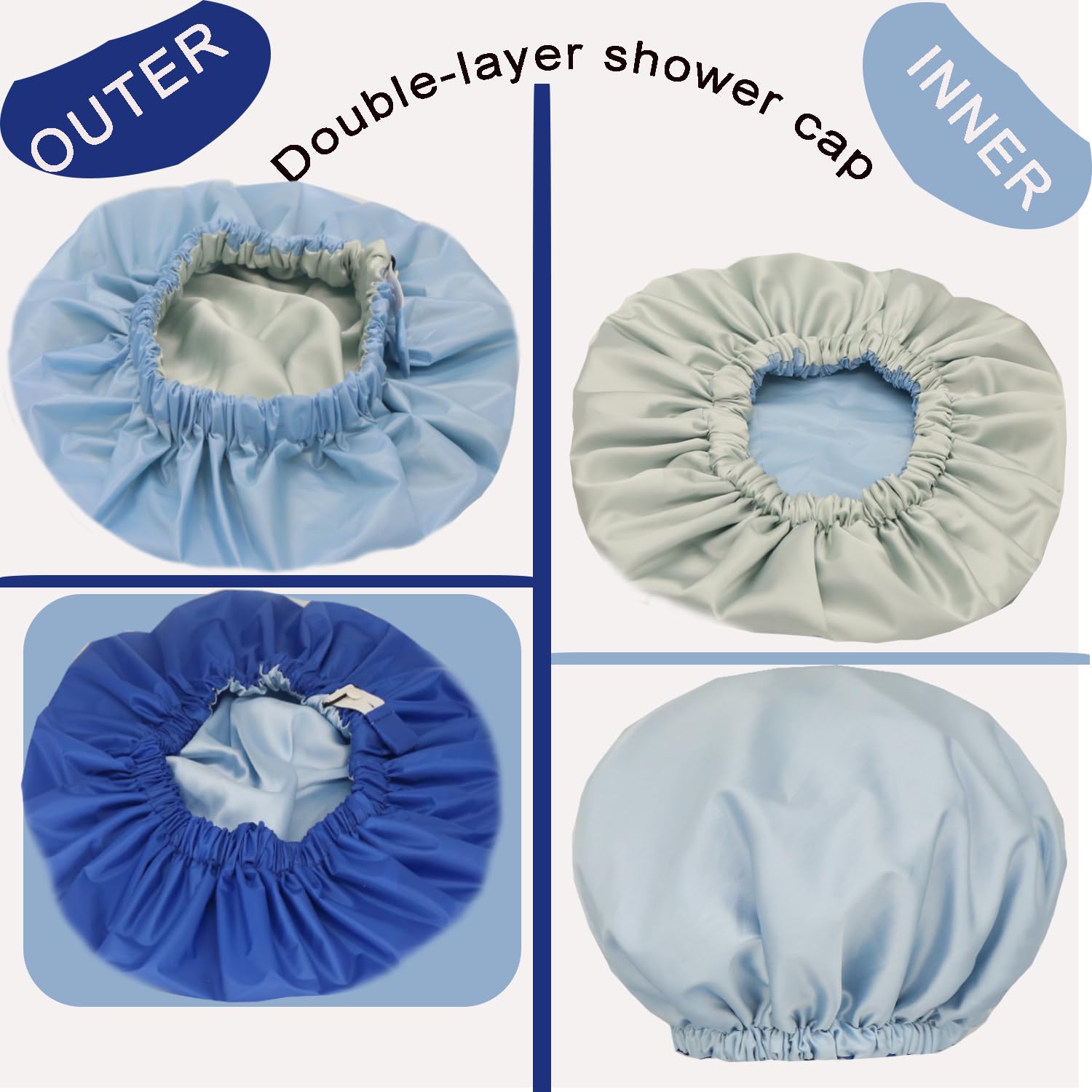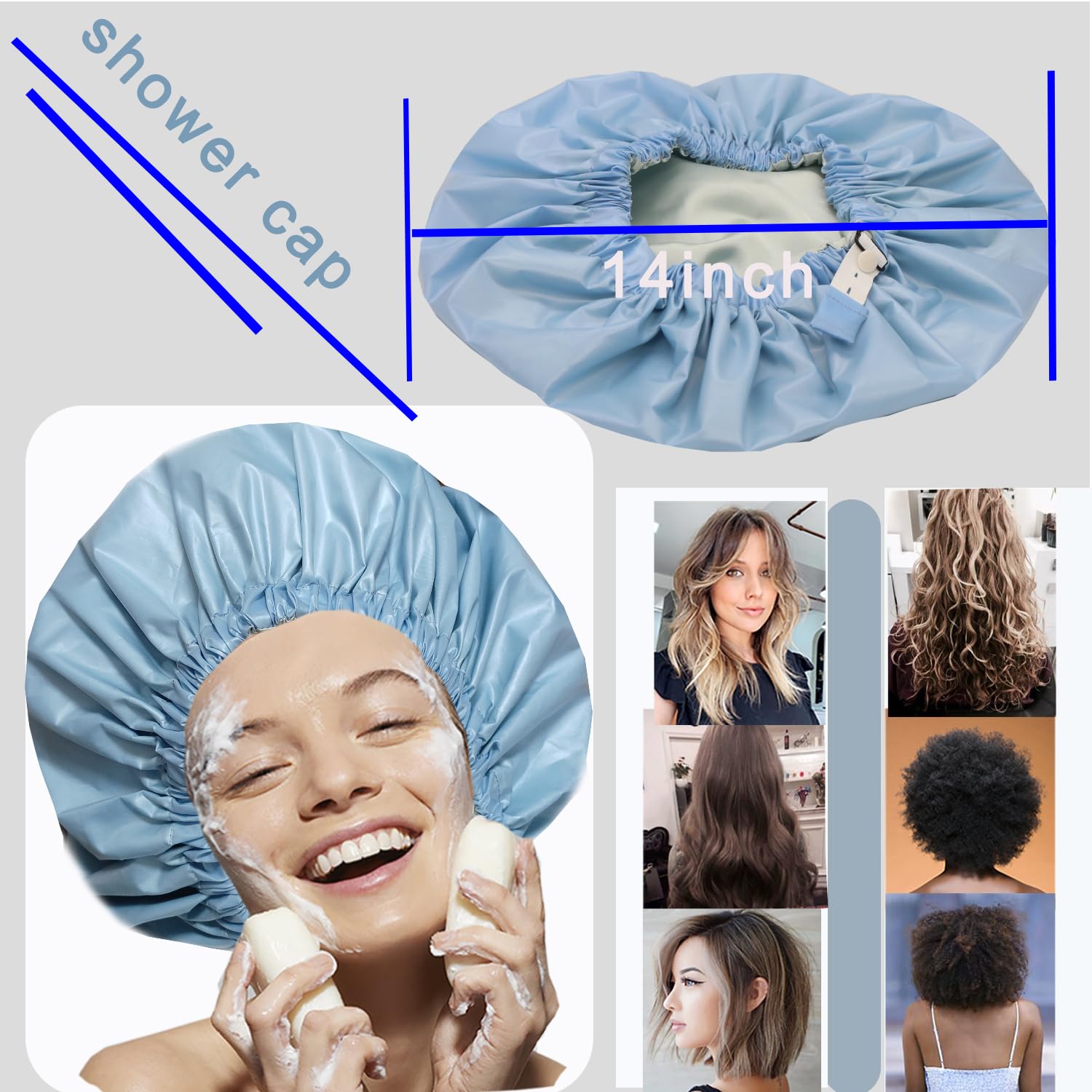 2.Design for Double layers: Reusable Shower Cap with Satin lining Is Made of Two Layers. The Outside Layer of Big Shower Cap Is Waterproof Which Can Keep Hair Dry Completely. The Inside Layer Is Premium Satin Fabric Compared with Plastic or Disposable Shower Cap, Which Is Soft Smooth and Skin-Friendly, Comfortable, Can Entirely Maintain Your Hair, Make Your Hair Frizz-Free, and Tangle-Free