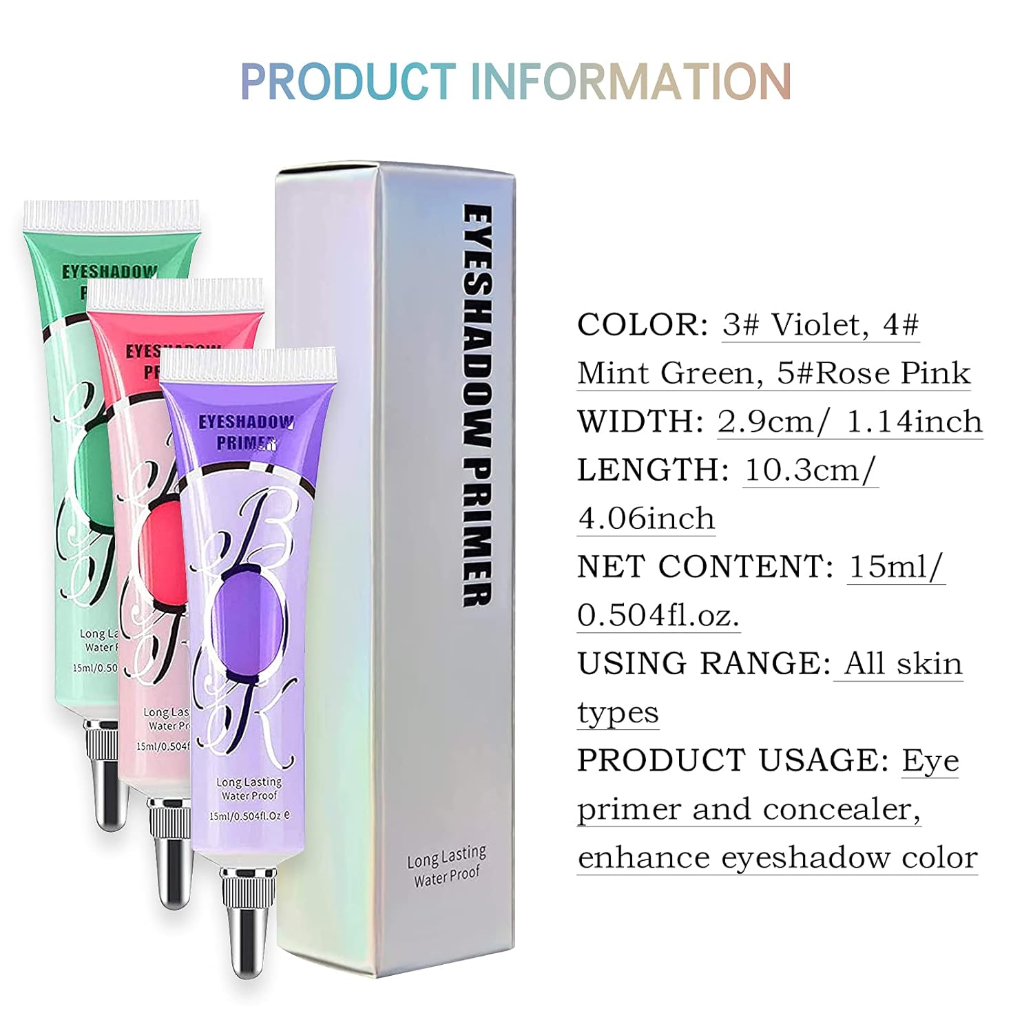 ❤ Package Includes: 3 X Eyeshadow Primer (Violet & Mint Green & Rose Pink)