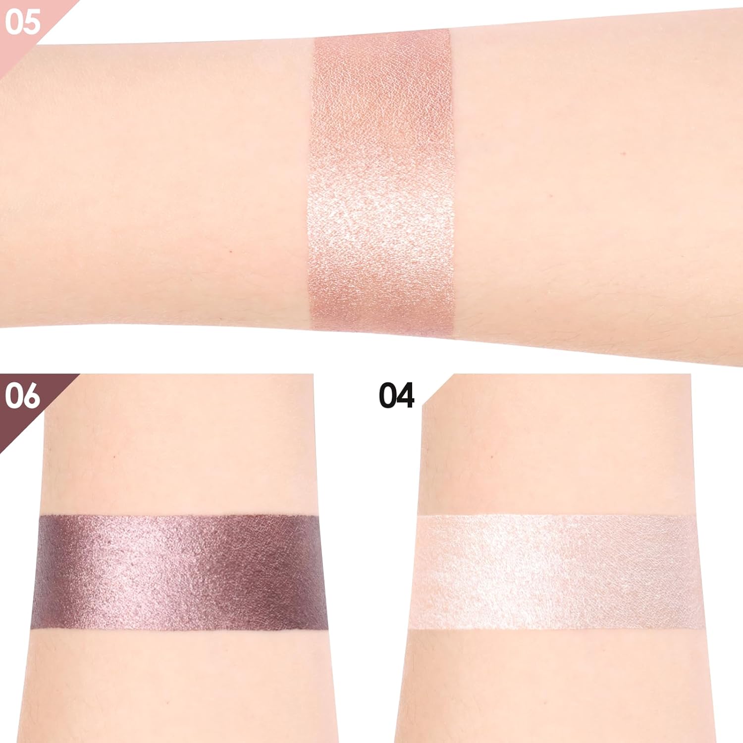 【How to Use】This eyeshadow stick set includes three eye shadow pens, first the light one is used as a base to coat the eye socket thoroughly, and then evenly spread it with your fingers, then apply the dark one on the fold of the double eyelid, then smudge with your fingertips, and finally use a pearl highlighter eyeshadow pencil to draw on the sleeping silkworm area.