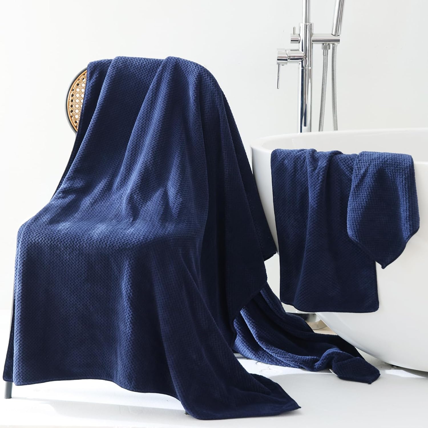30×60 Inches Extra Large Bath Towels Set Super Soft Absorbent Luxury Microfiber Towels for Bathroom (Navy Blue, 6PCS)