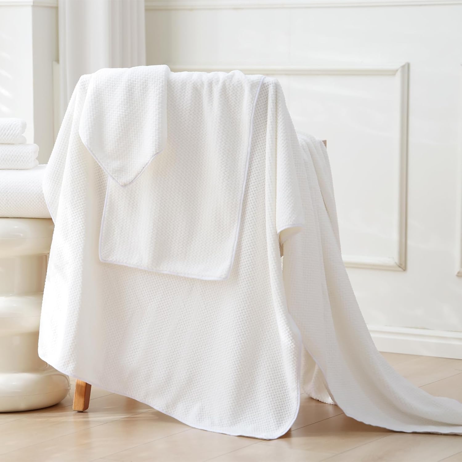 SUPER SOFT & ABSORBENT: The towel crafted from lightweight microfiber, our bath towels are super soft to the touch while offering exceptional absorbency. Enjoy a plush feel against your skin with these high-quality bathroom towels that quickly wick away moisture.