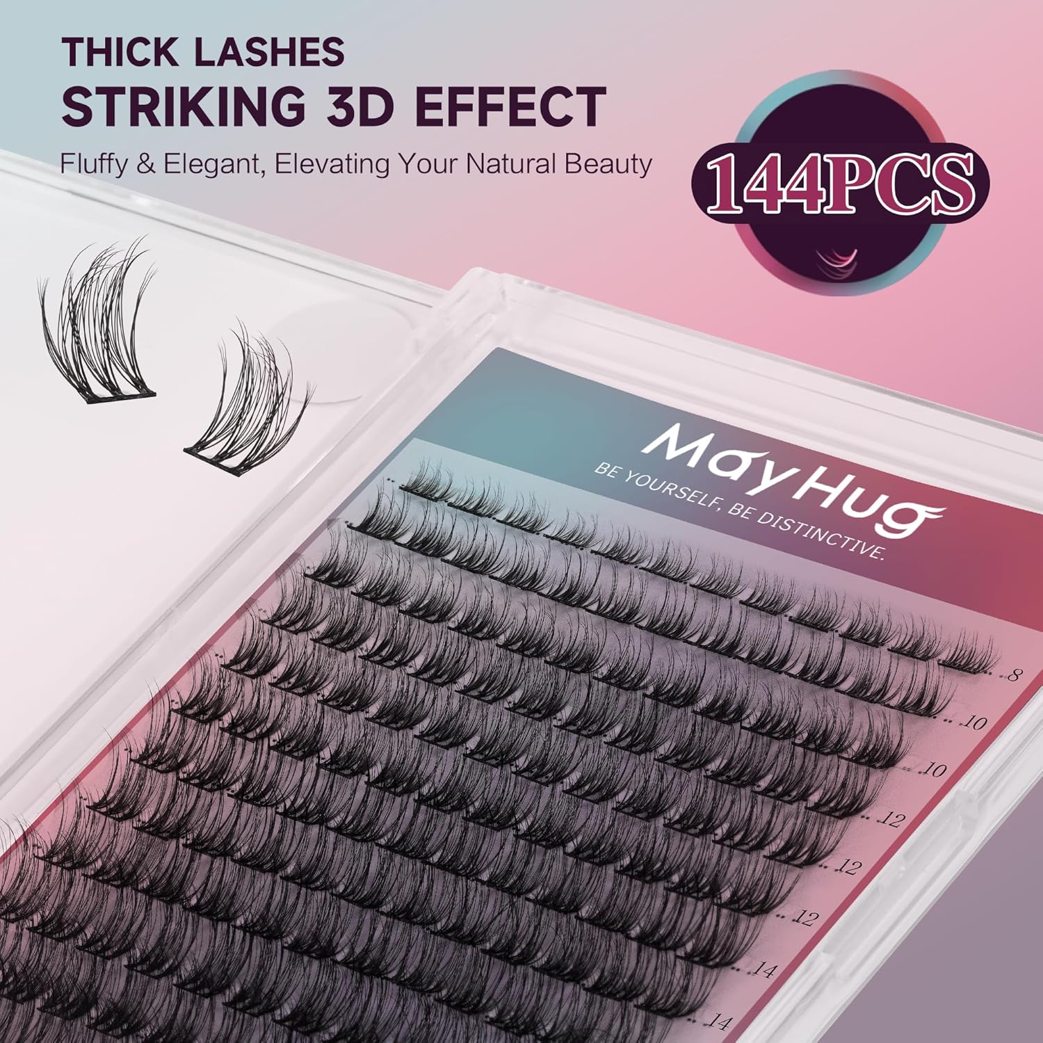 【3D Effect Lashes】Unique 3D multi-angle cross design, Use high-end layering process, naturally messy, making your eyes look bigger&charming. 144 Pcs of large capacity, more eyelash clusters available at the same price. Apply lash clusters by yourself and enjoy the salon effect at home. Save so much money and time!