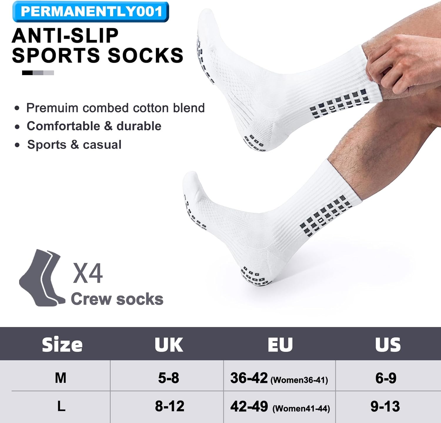 4-Pair Anti-slip Grip Soccer Socks Men Women Cushioned Sports Sock Rugby Yoga Basketball Running Hiking Work