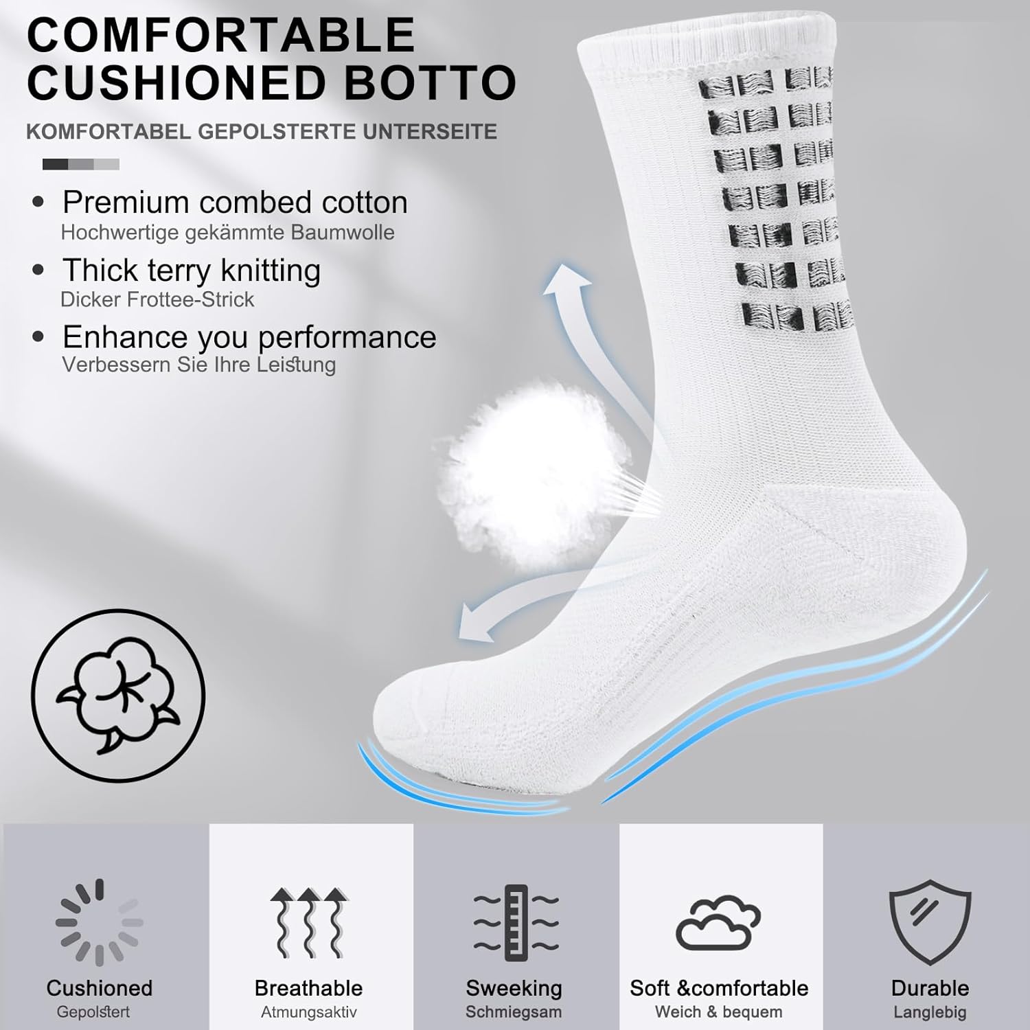 4-Pair Anti-slip Grip Soccer Socks Men Women Cushioned Sports Sock Rugby Yoga Basketball Running Hiking Work