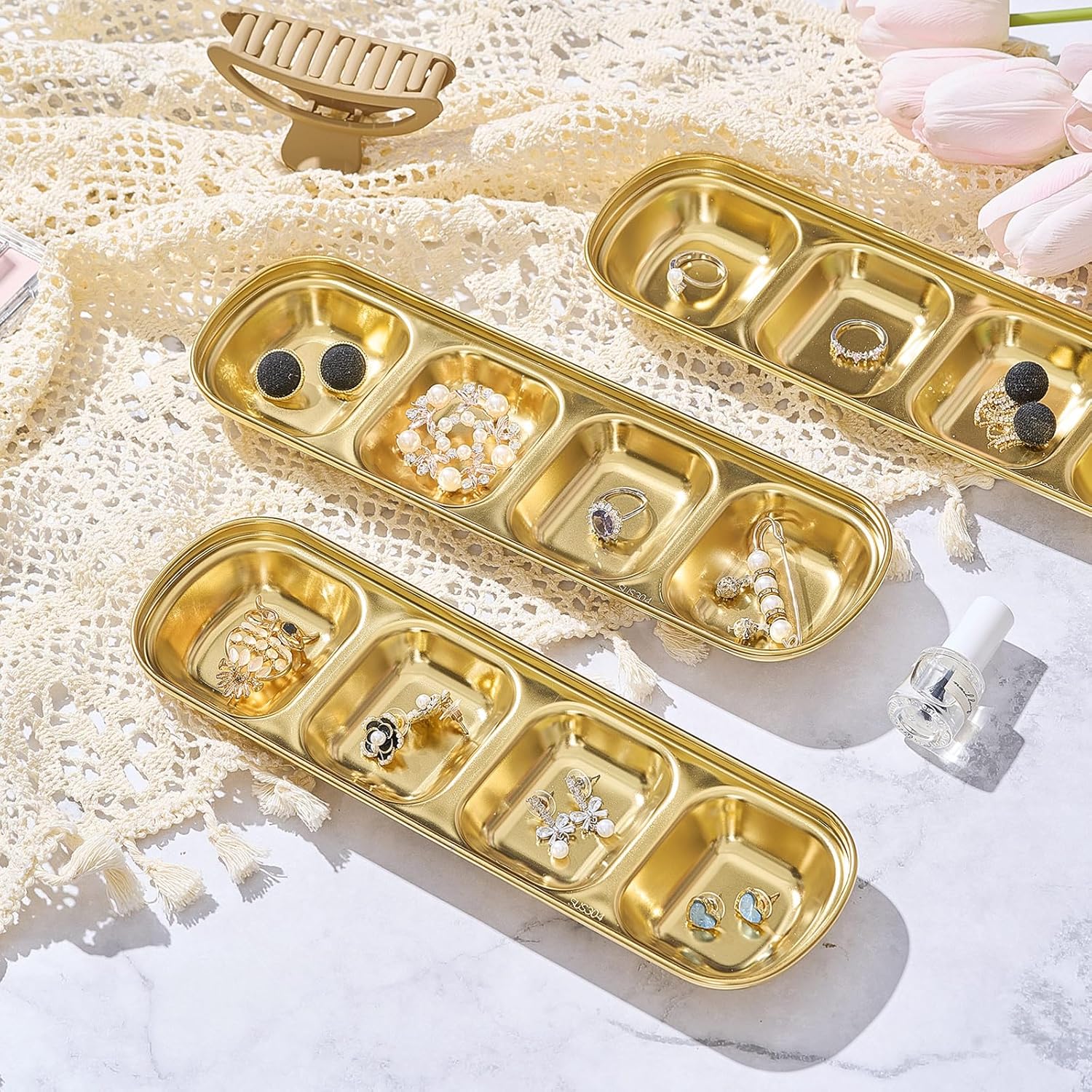Multi Functional Bowl and Dish: the set includes four four grid gold trays, which are suitable for placing facial cleanser and other cleaning and skin care lotion, and can also be applied as facial mask preparation containers, convenient and practical