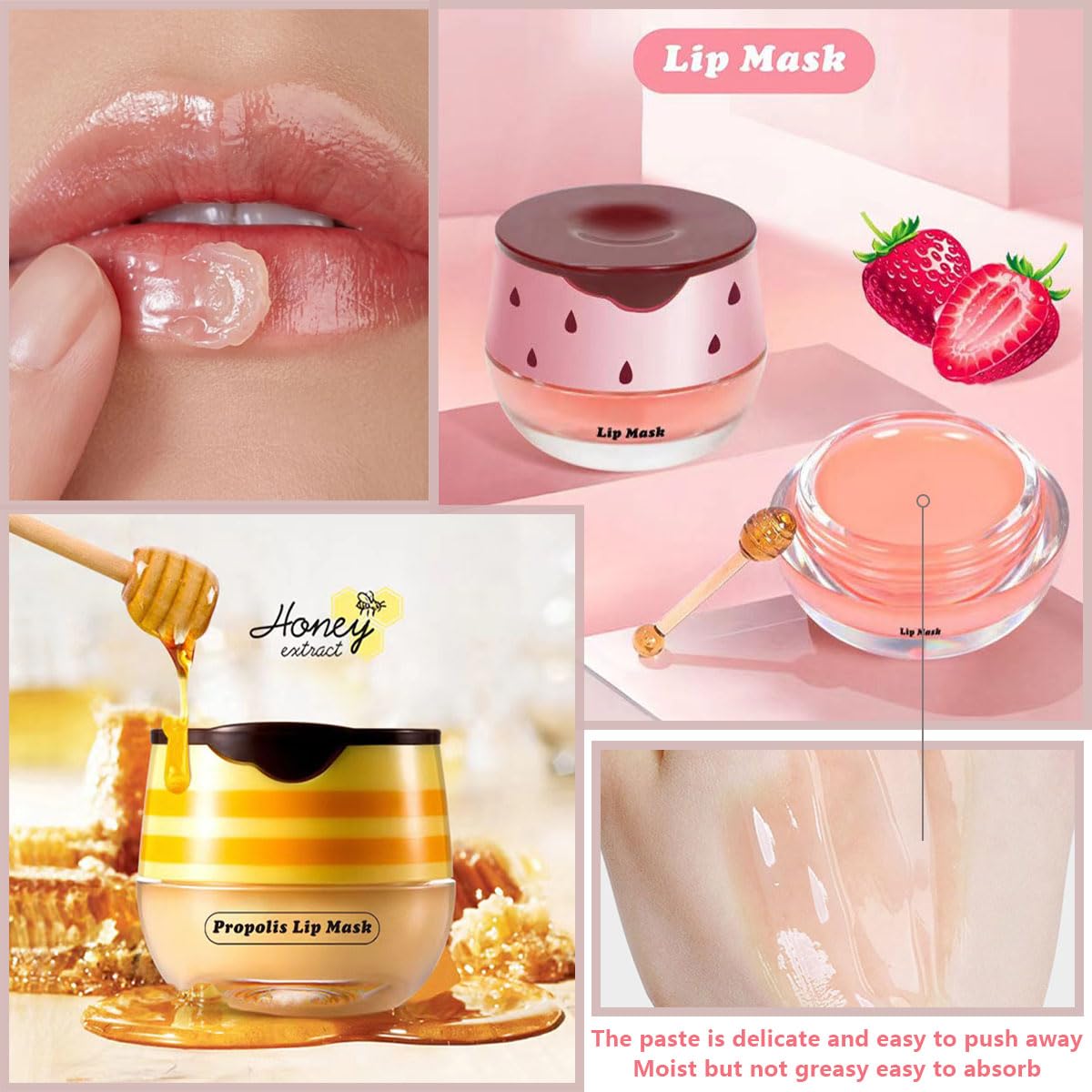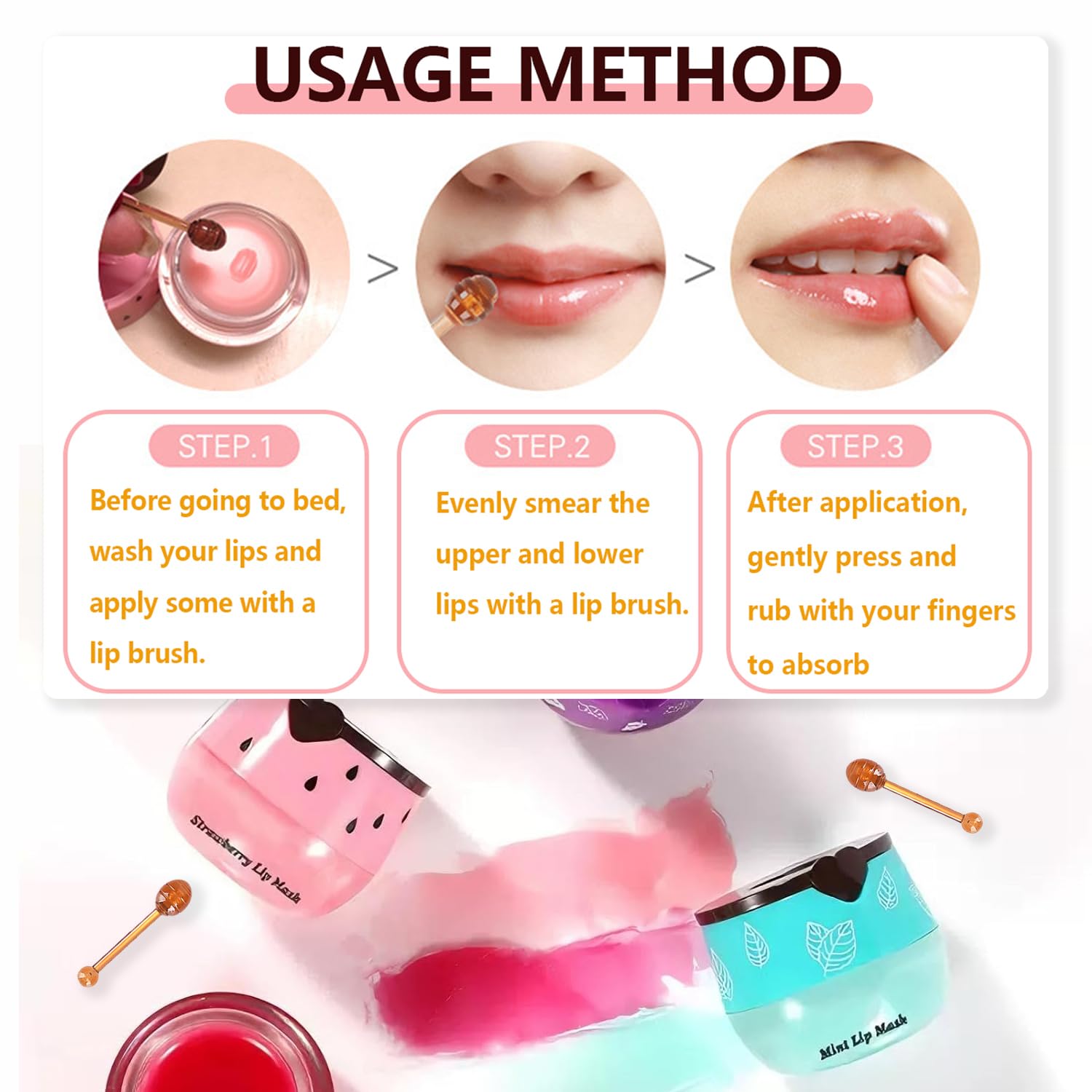 Change your lip treatment with these delightful nourishing lip masks. Each mask offers a unique fruity experience, including watermelon, apple lime, strawberry and propolis. These fruit-based lip balms are specially formulated to moisturize and repair dry, chapped lips while you sleep. Convenient packaging features lovely fruit-inspired design and comes with an easy to use applicator. Suitable for all skin types, these lip masks provide deep moisturizing and nutritious with natural ingredients. They are perfect for travel or daily use. These unisex lip masks are perfect for anyone seeking soft, soft lips. Regular use helps keep lips healthy and prevents dryness.