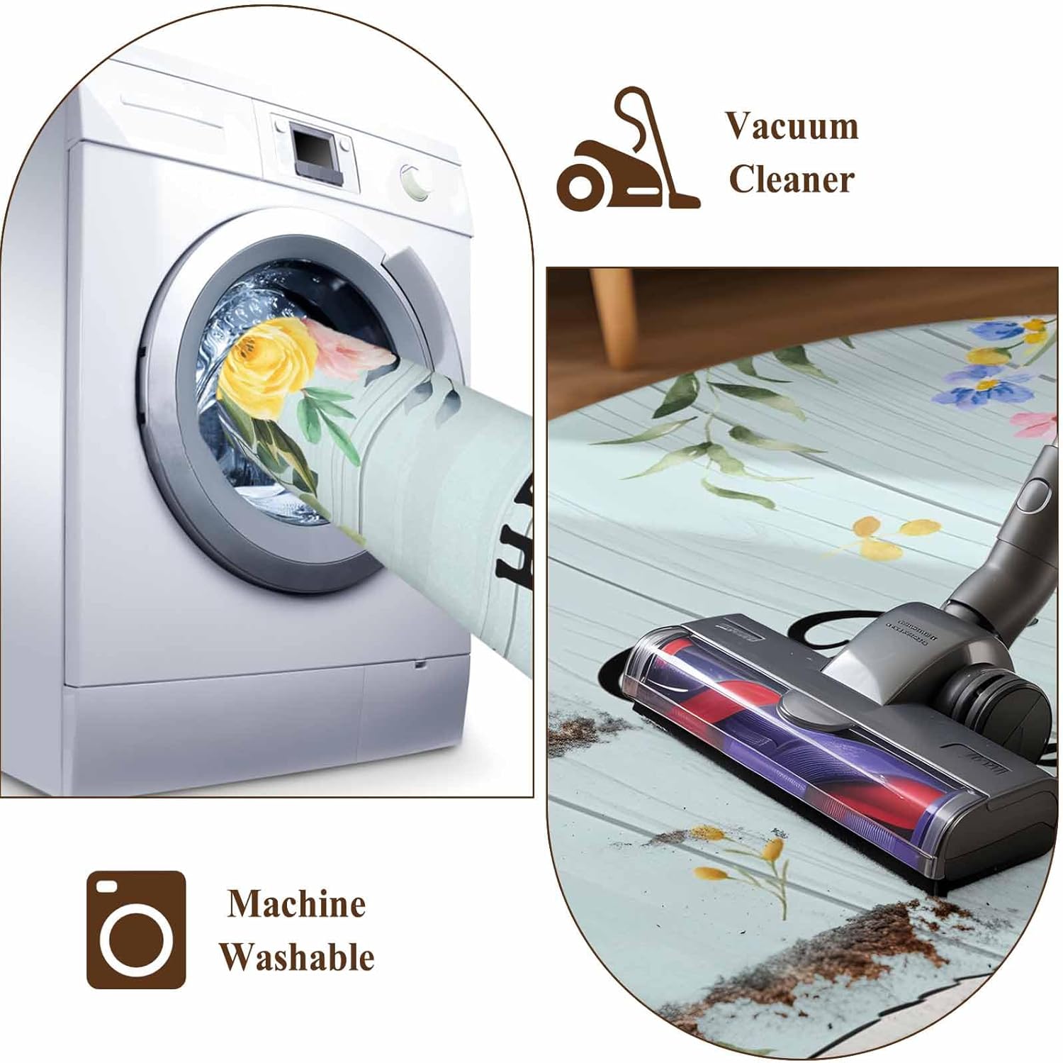 And the short pile is not easy to hide stains and is easier to clean. Vacuum clean or put in the washing machine.