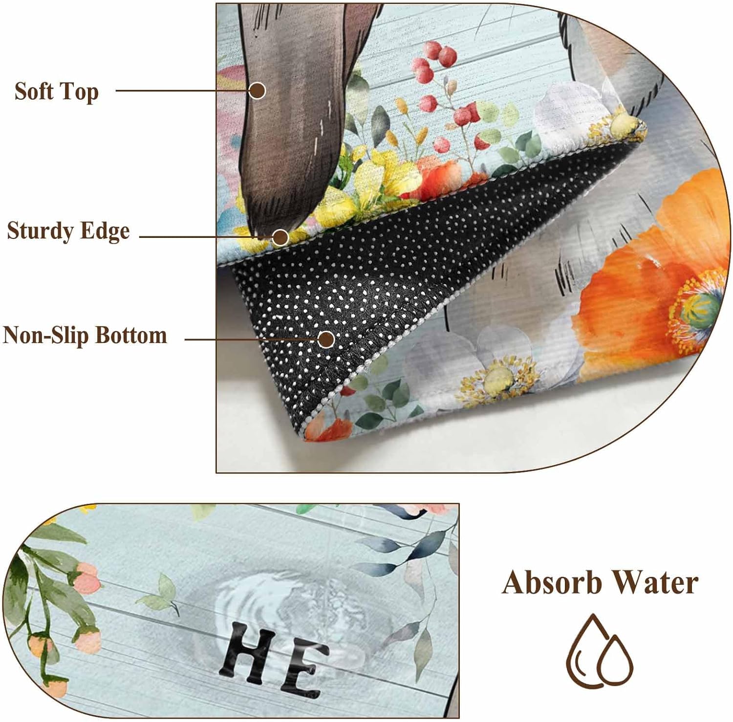 This kitchen rugs is made from high quality stain and splash proof fibers. When the water splashes on alfombra, the water will clump up and go to the top. It’s easy to spot clean.