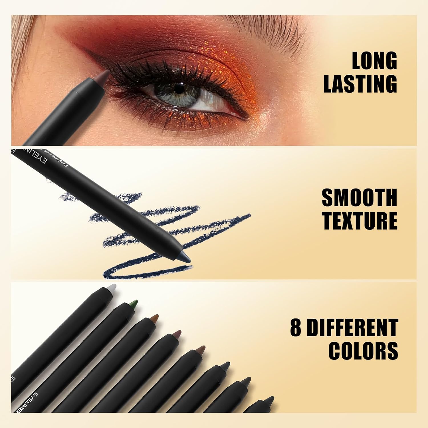 8Pcs Colored Eyeliner Eye Liner Pencils Gel Eye Line Pencils Set Smooth Use Long-Lasting & Waterproof