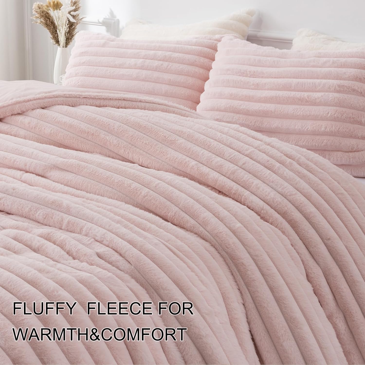 Cozy Warmth: Super soft feeling similar to real fur,the striped flannel comforter set boasts an incredibly soft flannel texture on both sides, keeping you warm and cozy all night long.