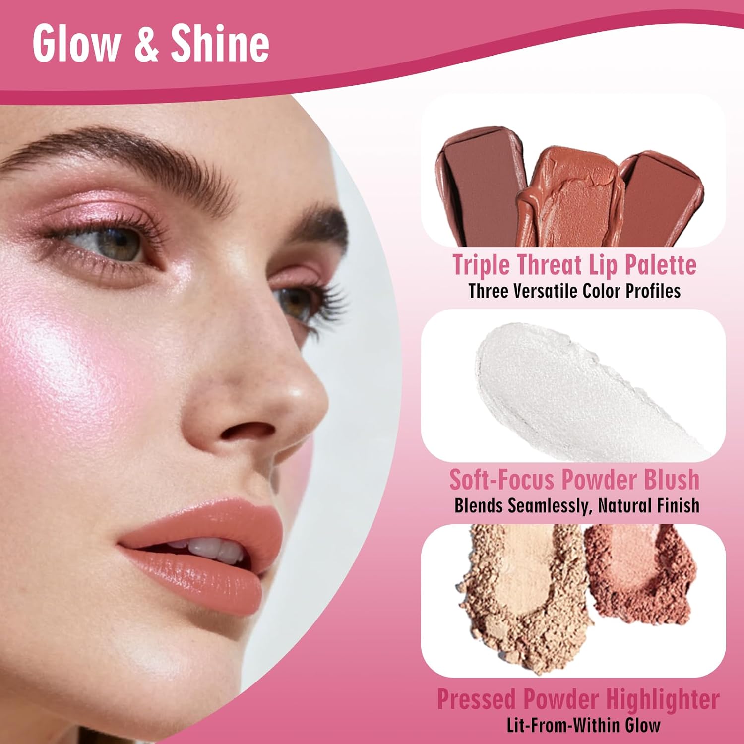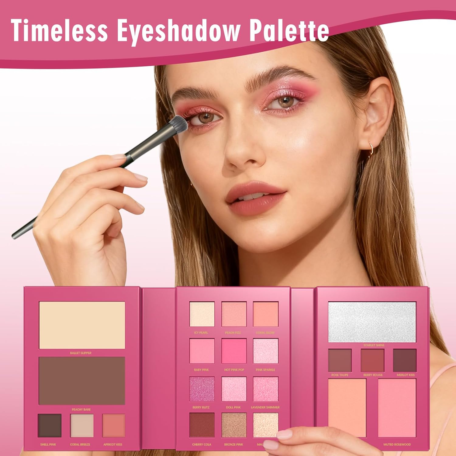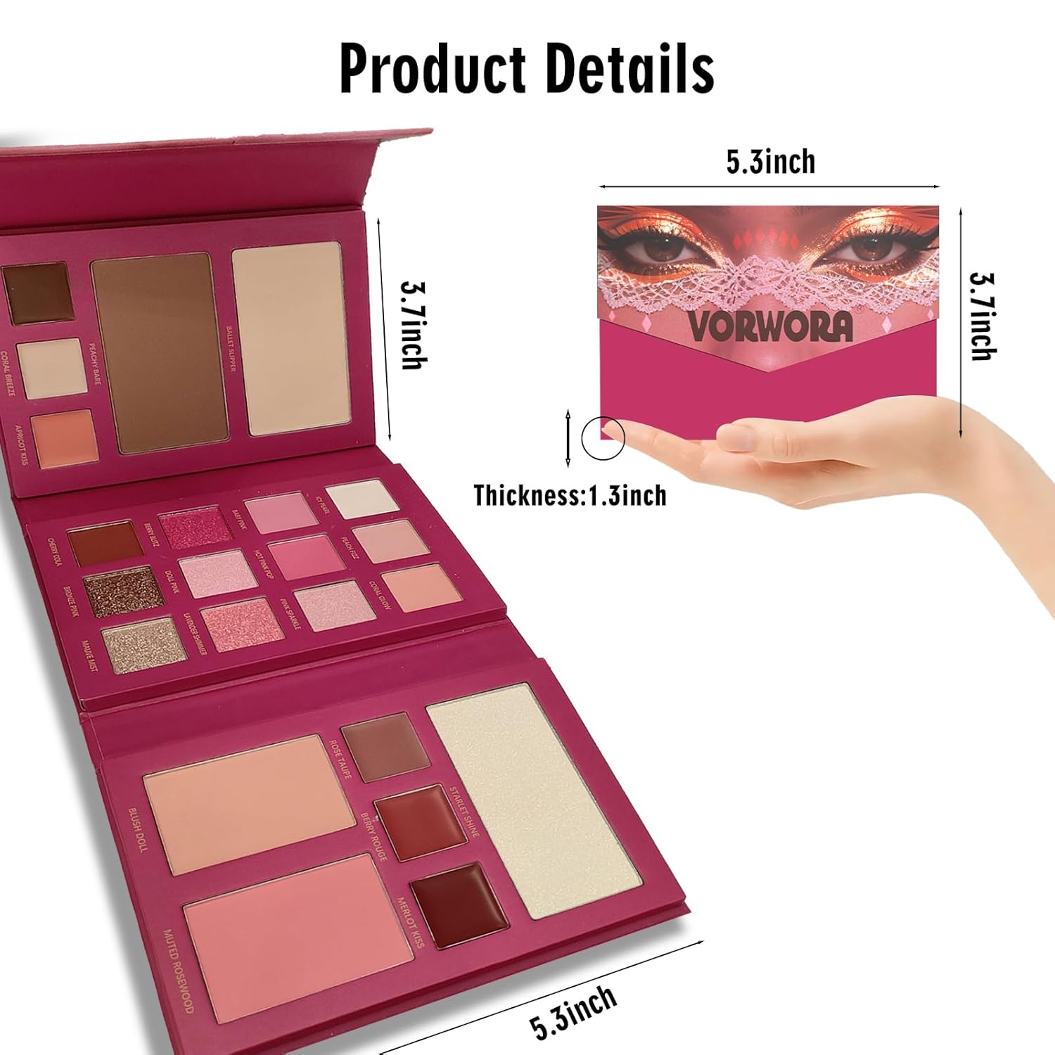 Long-Wearing & Versatile Color Range – Includes curated shades for eyeshadow, blush, lip color, contour, corrector, and highlighter that stay vibrant all day, allowing you to create multiple looks with just one palette