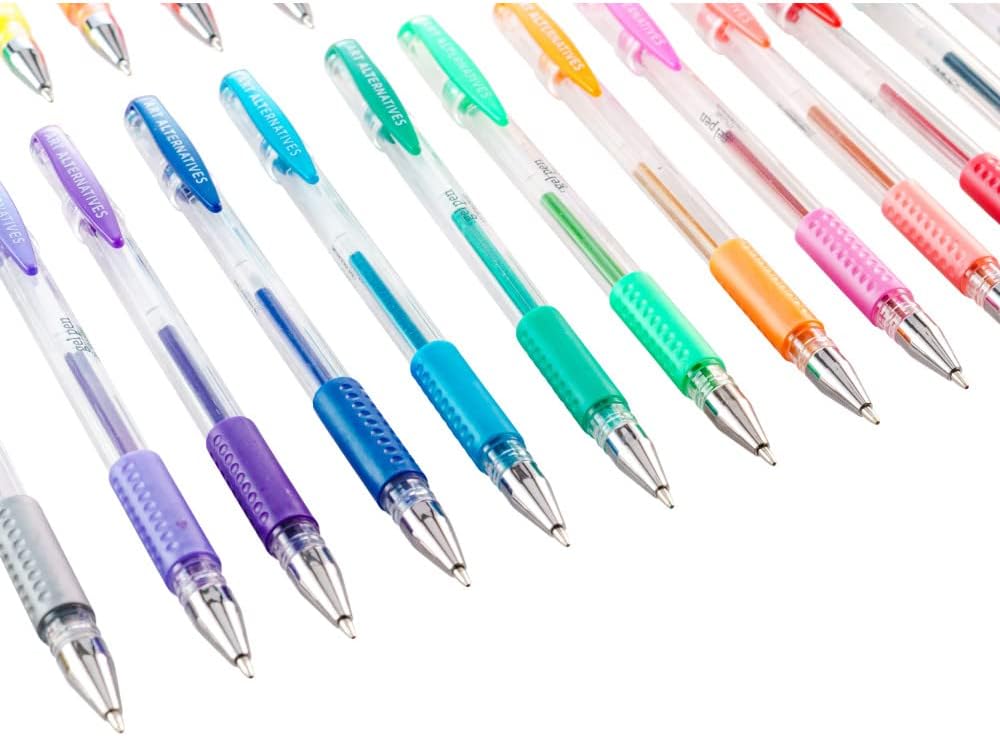 Gel pens add a pop of vibrancy to writing. Create colorful and intricate illustrations on journal pages, planners, notebooks, art pieces and more. These gel pens features vibrant acid-free ink; add color and verve to any project! This 48pc set includes Black, Blue, Red, Green, Neon Blue, Neon Green, Neon Orange, Neon Pink, Neon Violet, Neon Yellow, Neon Red, Pastel Blue, Pastel Y-Orange, Pastel Pink, Pastel Red, Pastel Bl-Violet, White, Pastel Yellow, C-Blue, Metallic Blue, Metallic Sky Blue, Metallic Gold, Metallic Green, Metallic Y-Green, Metallic Orange, Metallic Pink, Metallic Red, Metallic Rose, Metallic Silver, Metallic Violet, Mtlc Dk Violet, Glitter Black, Glitter Blue, Glitter D Blue, Glitter R Blue, Glitter T Blue, Glitter Bordeaux, Glitter D Brown, Glitter Gold, Glitter Khaki, Glitter Pink, Glitter Red, Glitter Silver, Glitter P Violet, Neon Glitter Blue, Neon Glitter Pink, Neon Gltr Violet And Neon Glitter Red.