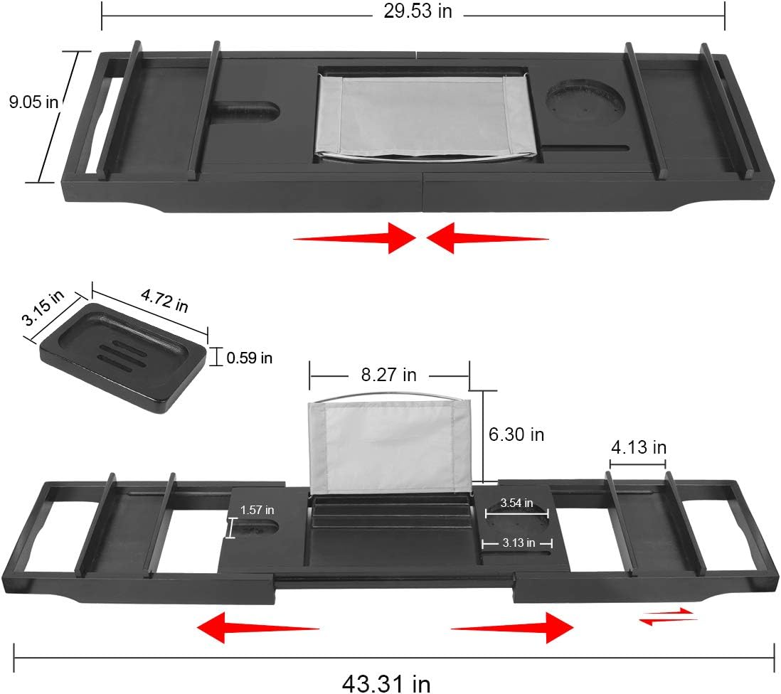 FITS STANDARD BATHTUB: Our bathtub caddy was specifically designed to expand from 29.5 inches to 43 inches, fits all standard roman bathtub,you just need to manually adjust it to the right length and don’t need any tools.