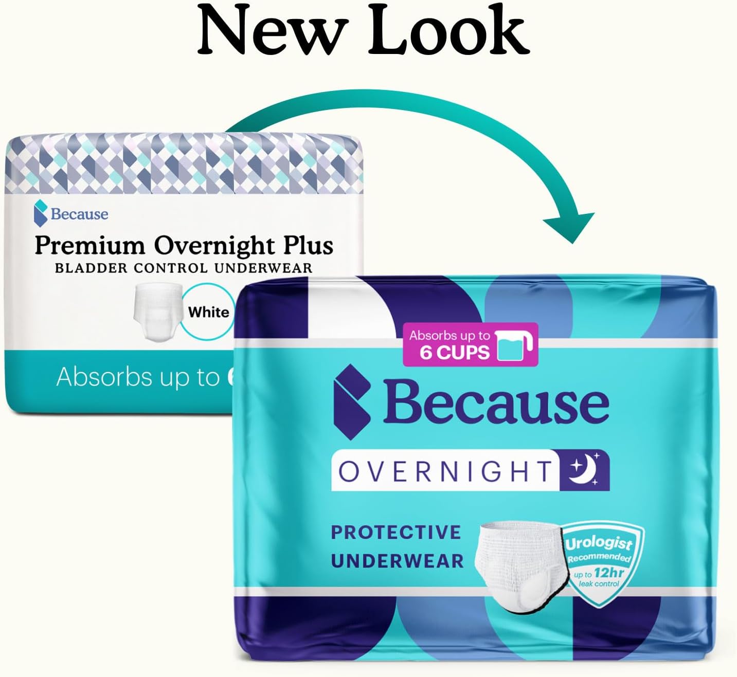 Because Overnight Incontinence Underwear and Booster Pad Bundle for Men and Women | Includes Underwear – White, Size Large 20 Count and Booster Pads 20 Count – Absorbs up to 10 Cups
