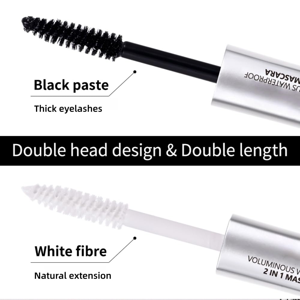 Black and White Waterproof Mascara, 1 Mascara with 2 Colors, Long Lasting, No Smudge,Volume and Length