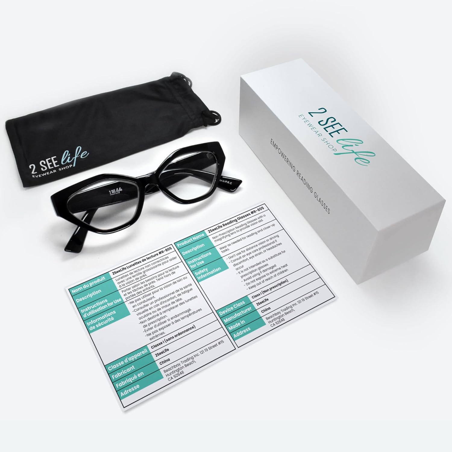 STRONG & DEPENDABLE: Searching readers for women that actually last? Geometric cat eye glasses for women are built with high-quality polycarbonate, offering resilience and durability. Proudly designed and inspected in the USA.