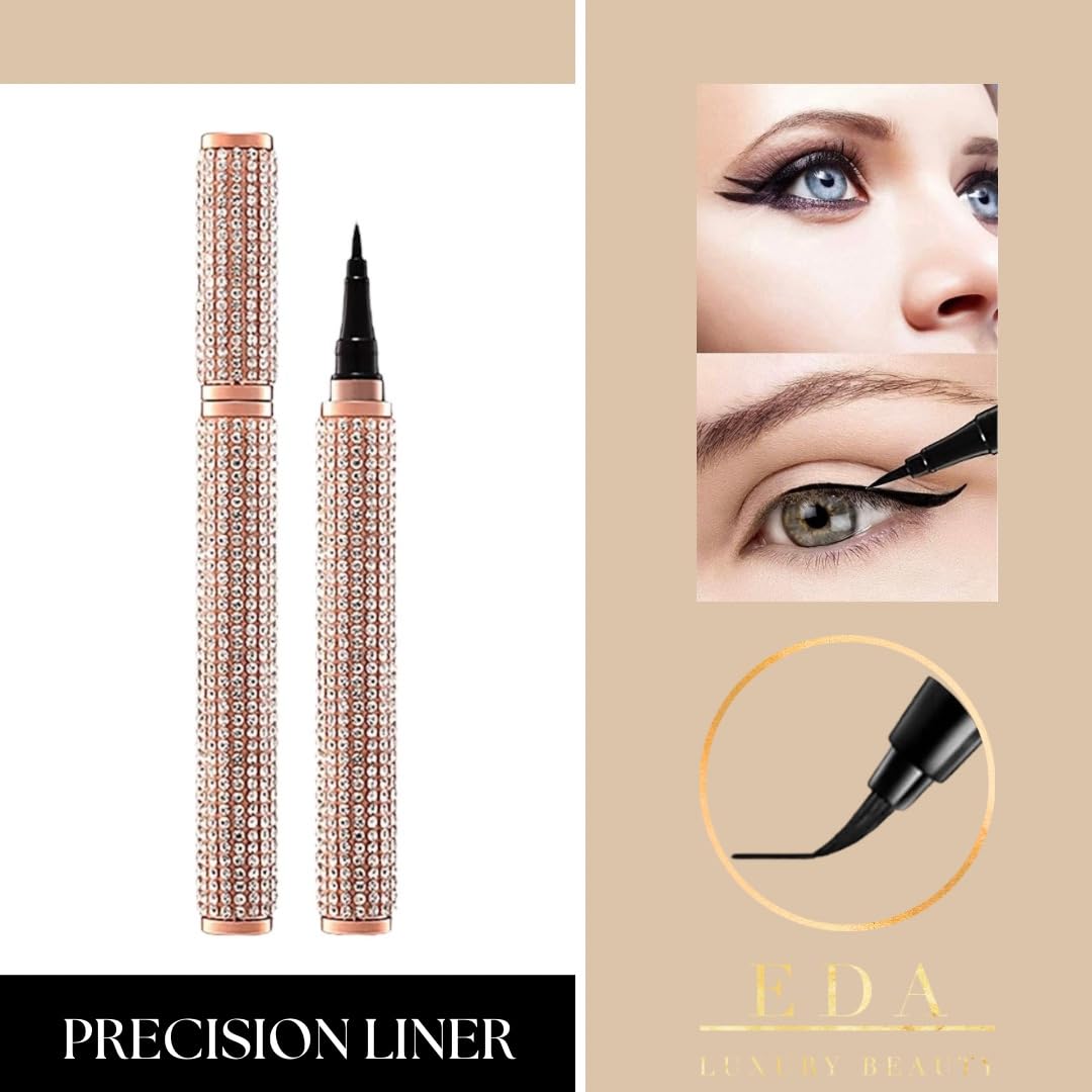 ULTRA-PRECISION FELT TIP – Unlock precision and perfection with Eda Luxury Beauty’s precision liquid eyeliner, featuring a precise tip that glides smoothly and effortlessly to create any desired look. From delicate thin lines to bold, dramatic strokes and winged cat eyes, this eyeliner delivers unparalleled control. Its quick-dry and waterproof formula ensures a flawless finish that stays perfectly in place for up to 24 hours, resisting fade, crease, smudge, and transfer. With Eda Luxury Beauty’s liquid eyeliner, achieve long-lasting, high-definition looks that dazzle.
