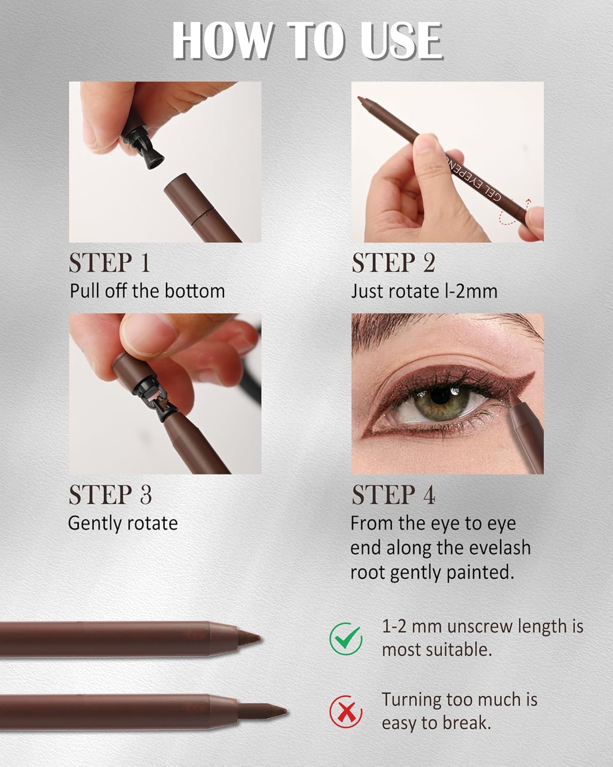 Waterproof and Long-lasting – Designed for long-lasting wear, this gel eyeliner is waterproof and smudge-proof, allowing you to glide through your day without flaking or clumping. Creamy formula delivers intense color stays fresh for hours. With exceptional staying power, it locks in your desired look—keeping lines sharp and precise from morning until night.