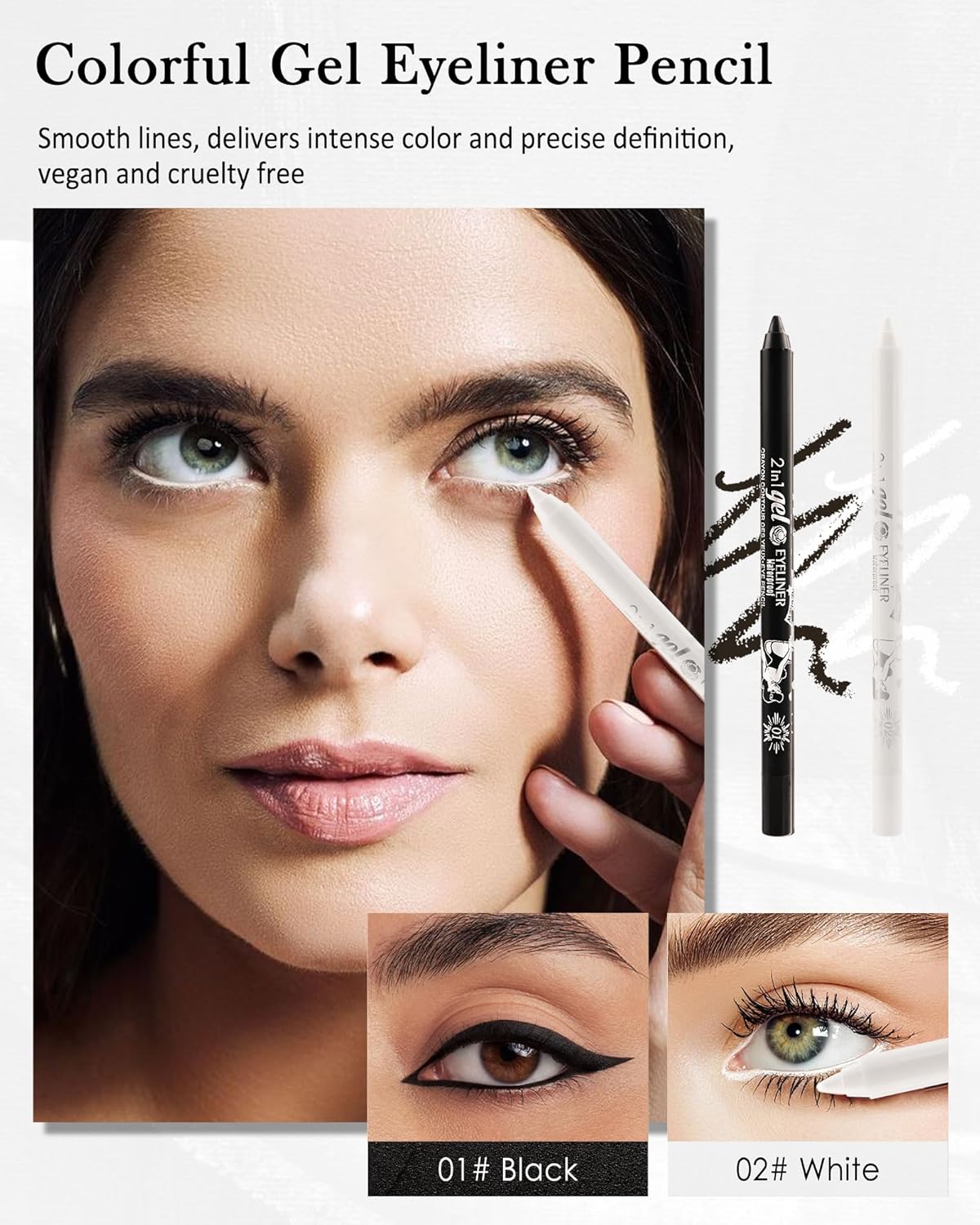 Gel Eyeliner Pencil, Sharpenable Eye Liner Waterproof Smudge proof Long Lasting, Matte Gel Cream Smooth Texture, Shimmer Cream Intense Color Waterline Eyeliner Pen Makeup with Sharpener, High Pigment Cruelty Free Delineador De Ojos