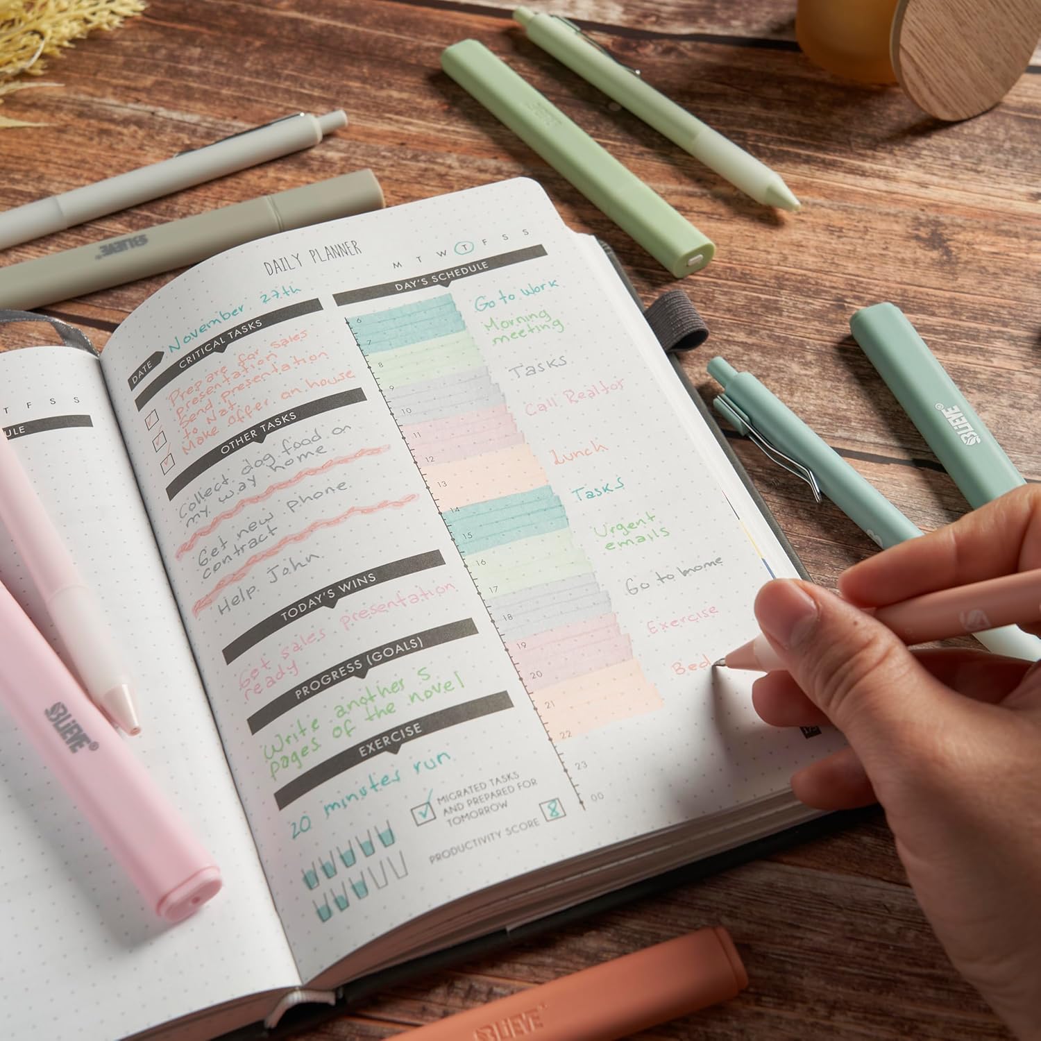 BIBLE SAFE – No bleed through thin paper like the regular markers do. The gel highlighter and fine point ball pens are Bible friendly