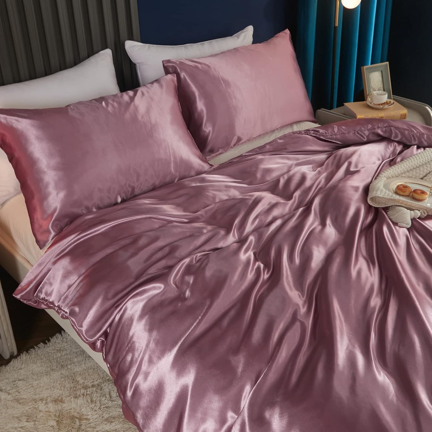 DESIGN – This satin silky comforter set designs with luxury european style, both sides are the same print and craft. Solid color design is extra bright and gorgeous, give your bedroom the luxury feeling