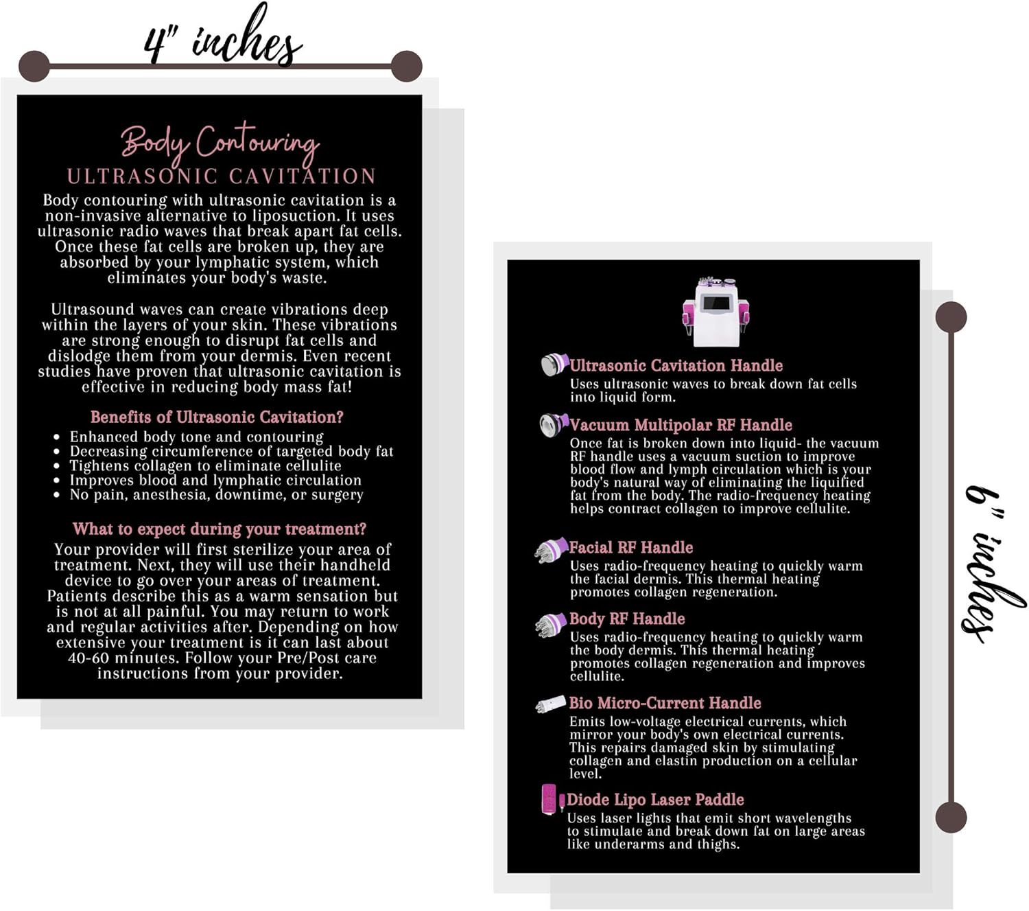 Printed front and back with ultrasonic cavitation body sculpting information!