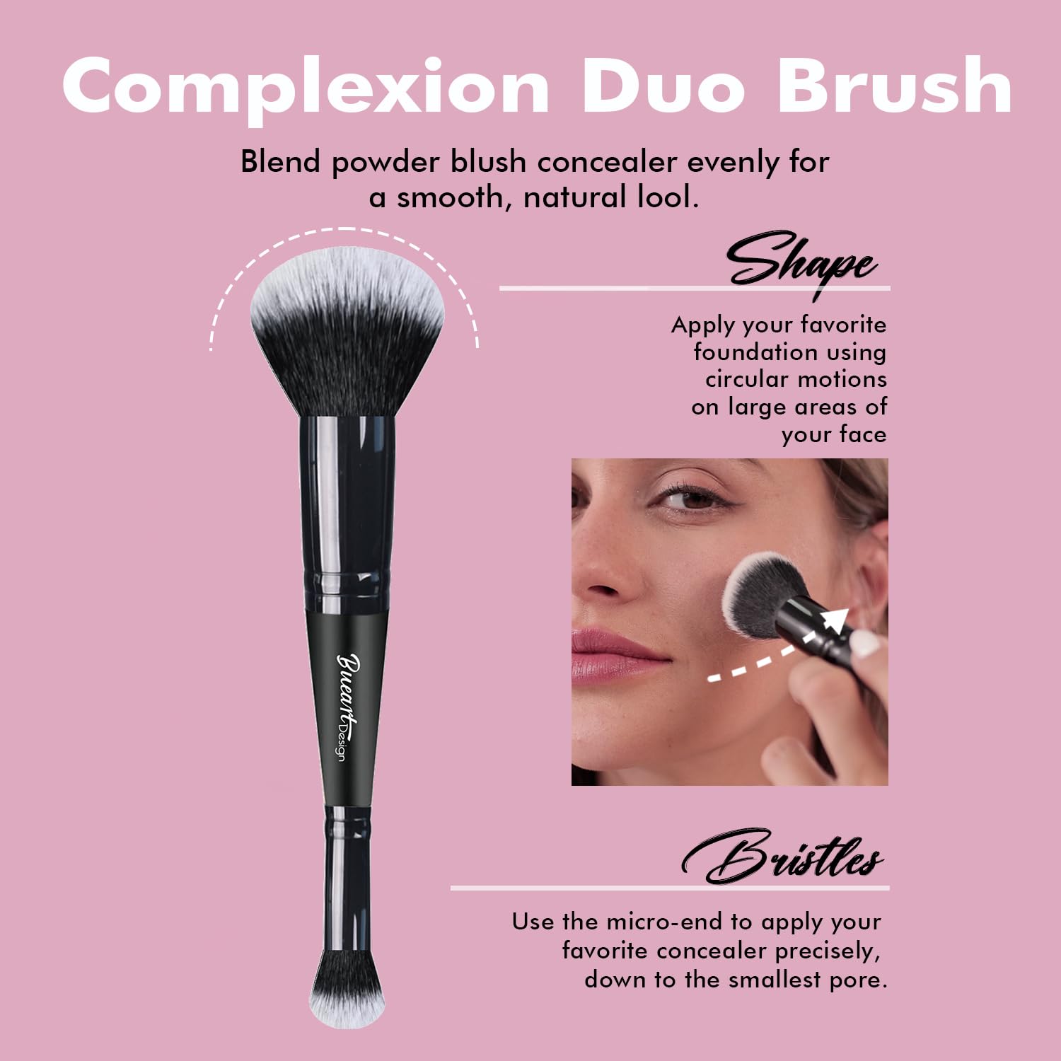 【2 in 1 Duo ended Complexion brush】 Designed for the application & blending out both Cream foundation and concealer ,Creates a flawless, airbrushed look, larger end is ideal for applying with liquids and powders full face ,Use the Smaller end to apply and buff concealer in the smaller areas of your face.